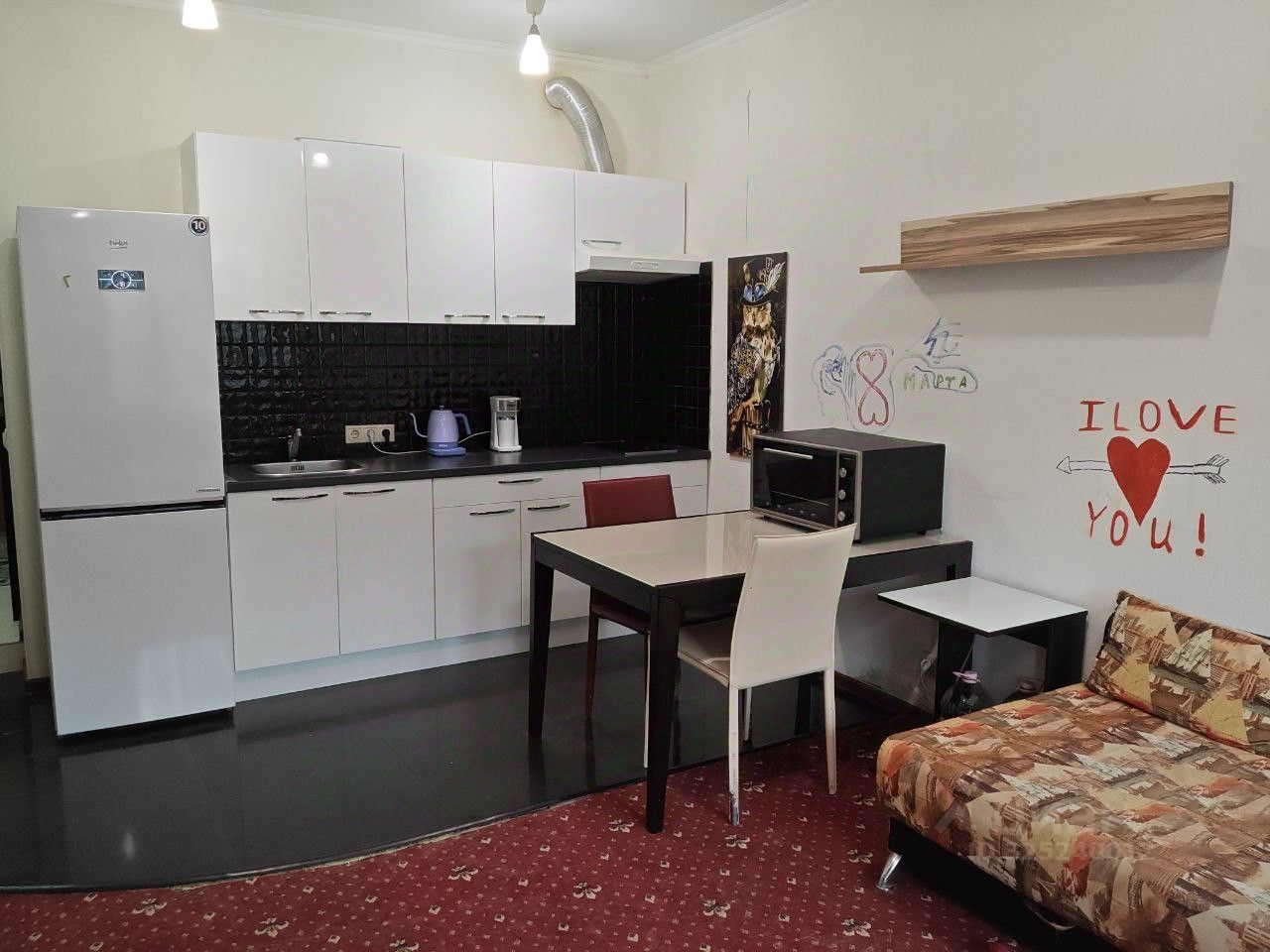 Просторная студия на 1 этаже шестиэтажного дома, расположенного на территории коттеджного поселка ''Светлый''. Закрытая ухоженная придомовая территория. Прекрасная локация. Станция ''Ромашково'' - 10 мин. пешком, метро Молодежная - 20 мин. на маршрутке. Вся инфраструктура (школа, поликлиника, магазины, салоны красоты, рестораны и т.д.) в шаговой доступности.