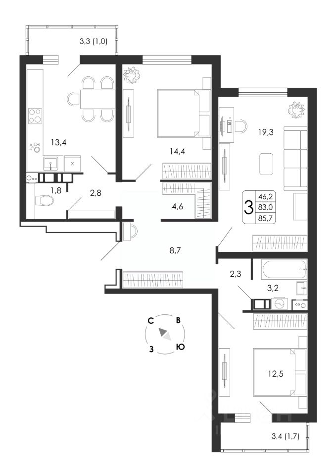 Общая площадь85,7 м2