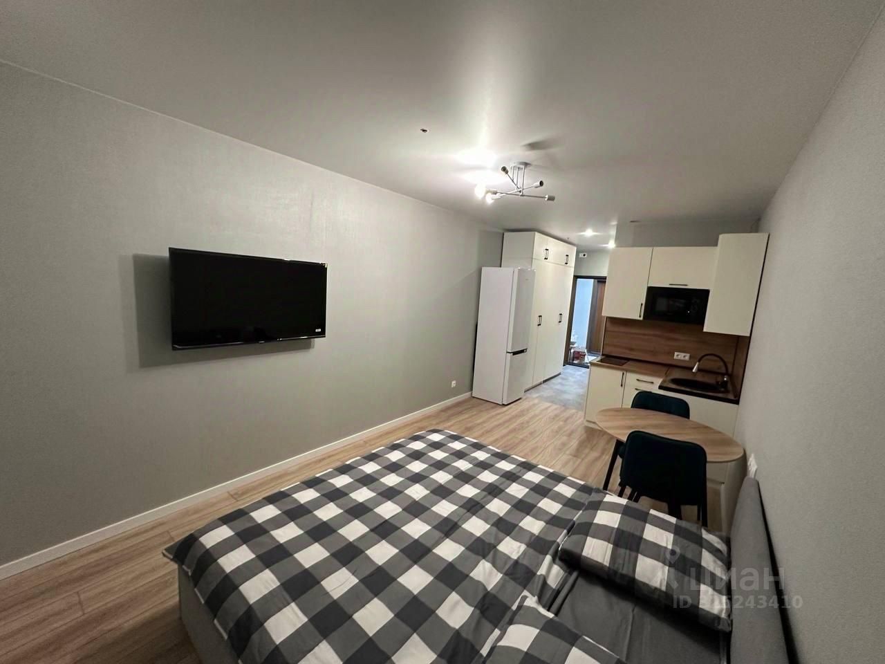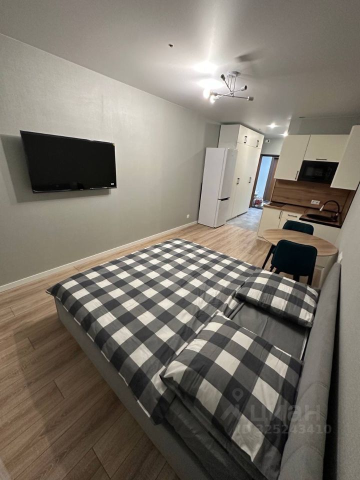 В квартире сделан современный евроремонт, поэтому она выглядит стильно и уютно. Пространство организовано как студия, что позволяет максимально эффективно использовать каждый метр. На кухне есть вся необходимая мебель, а также установлены кондиционер, холодильник, телевизор и стиральная машина. Ванная комната оснащена современной душевой кабиной.