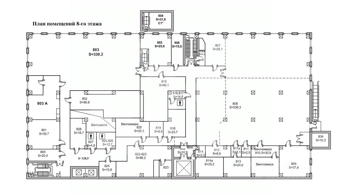 Этот лот состоит из нескольких помещений: 1530 кв. м., 1530 кв. м. и 1250 кв. м.