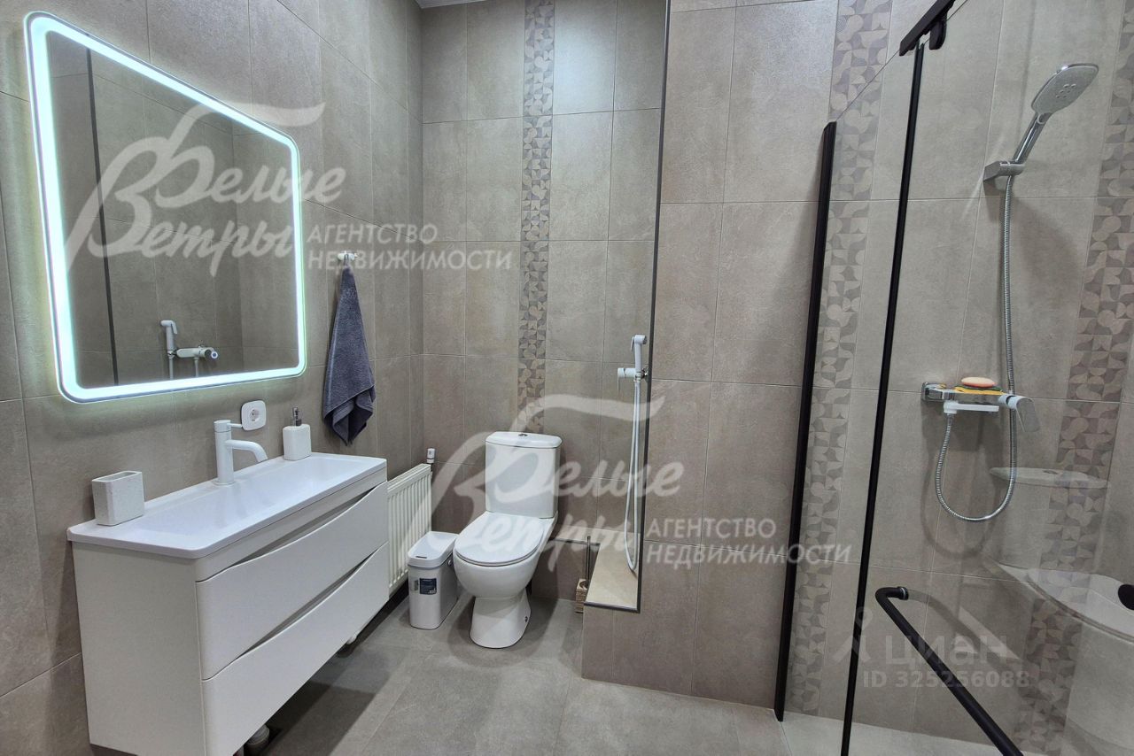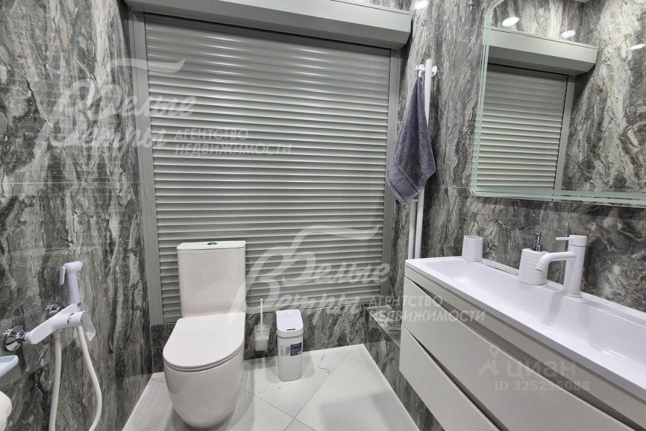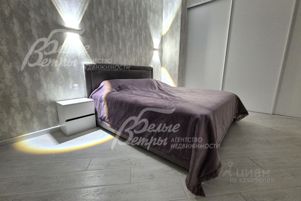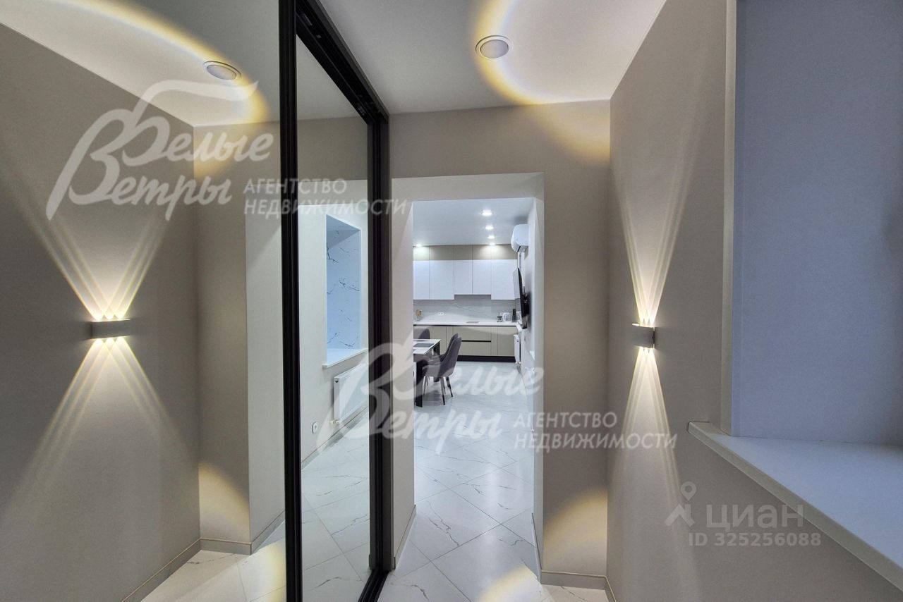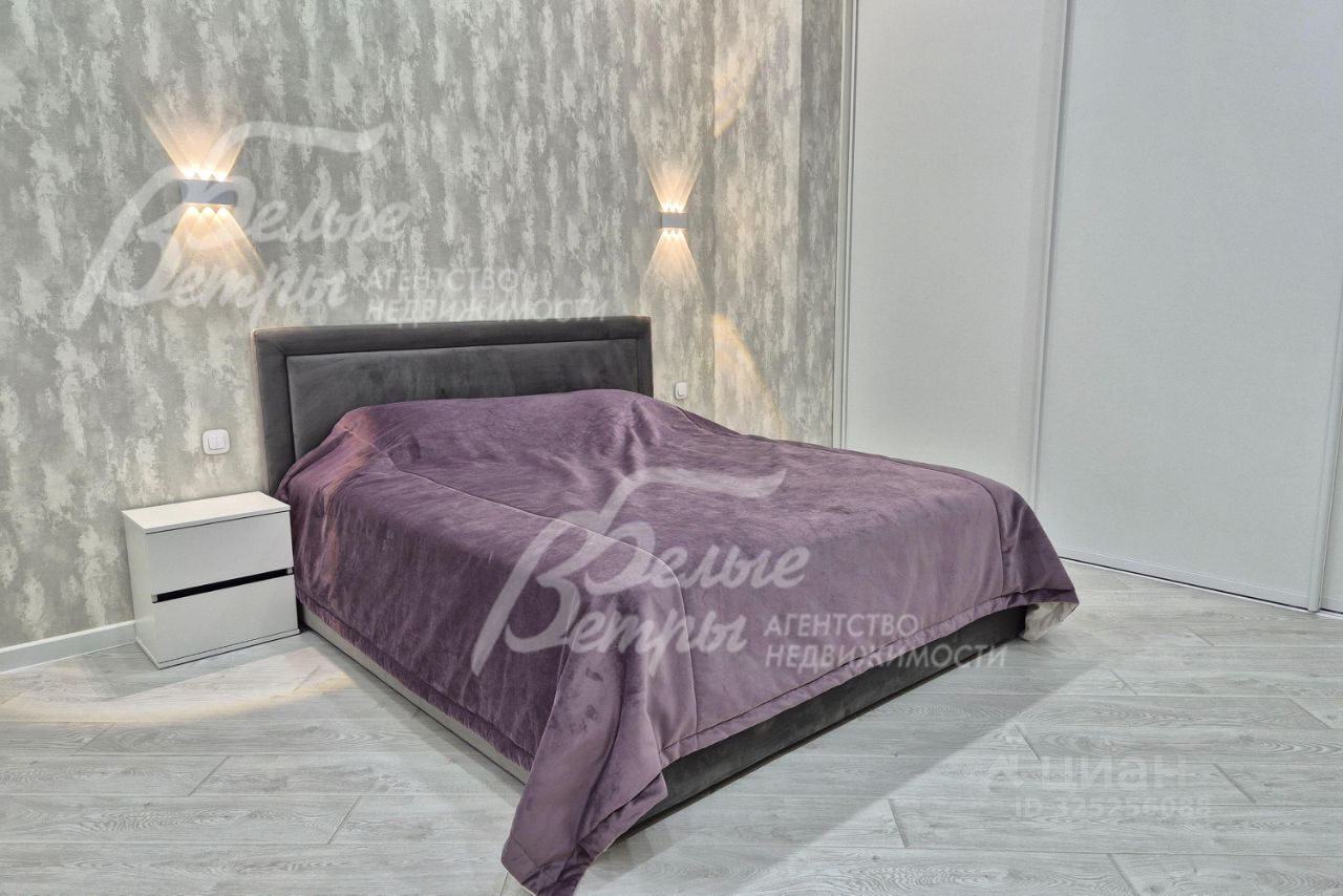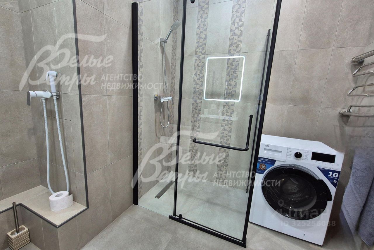 Мебель, оборудование: угловой кухонный гарнитур со встроенной техникой: электрическая варочная панель, духовой шкаф, микроволновая печь и холодильник Kuppersberg, посудомоечная машина (60см), двухкамерный холодильник. Стиральная машина на 7.5 кг, телевизоры 65 дюймов в гостиной и спальне. Обеденная группа на 6-8 персон, в гостиной диван, в комнате двуспальная кровать с тумбами, встроенные вместительные шкафы-купе, в т.ч. с зеркалами. Встроенные потолочные споты, стильные настенные бра..