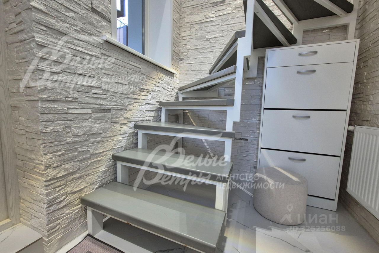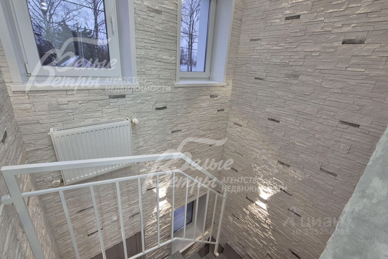 Описание внутренней отделки: в современном минималистичном стиле. На стенах: обои, штукатурка под покраску, искусственный камень, полы: на первом этаже плитка с системой ''теплый пол'', на втором этаже ламинатная доска, потолки: натяжные, со встроенным освещением. Лестница на металлическом каркасе шириной 82 см, ступени облицованы массивом дерева, глубина/высота ступеней 24/20см.