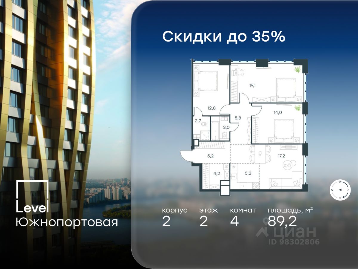 продам 4-к, Левел Южнопортовая ЖК, 234 961 819 ₽