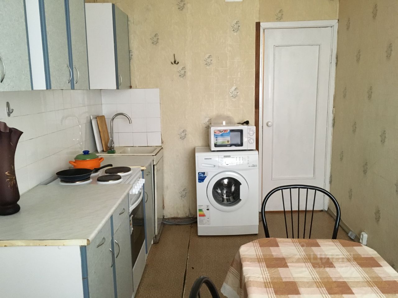 Квартира полностью меблирована - 2 спальных места в комнате - кровать и диван, шкафы, стол письменный, кухонный гарнитур. В прихожей встроенный шкаф и антресоли. В наличии: стиральная машина, холодильник, микроволновка, телевизор.