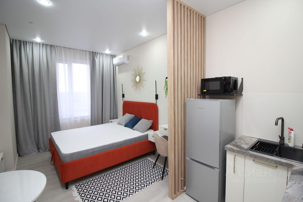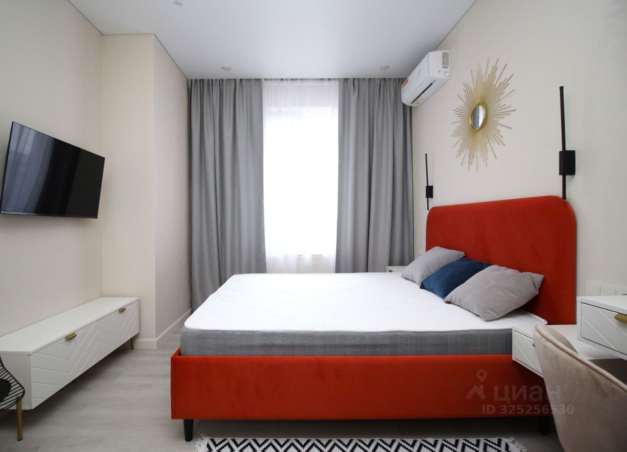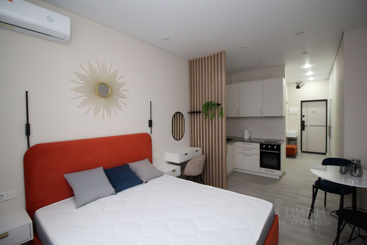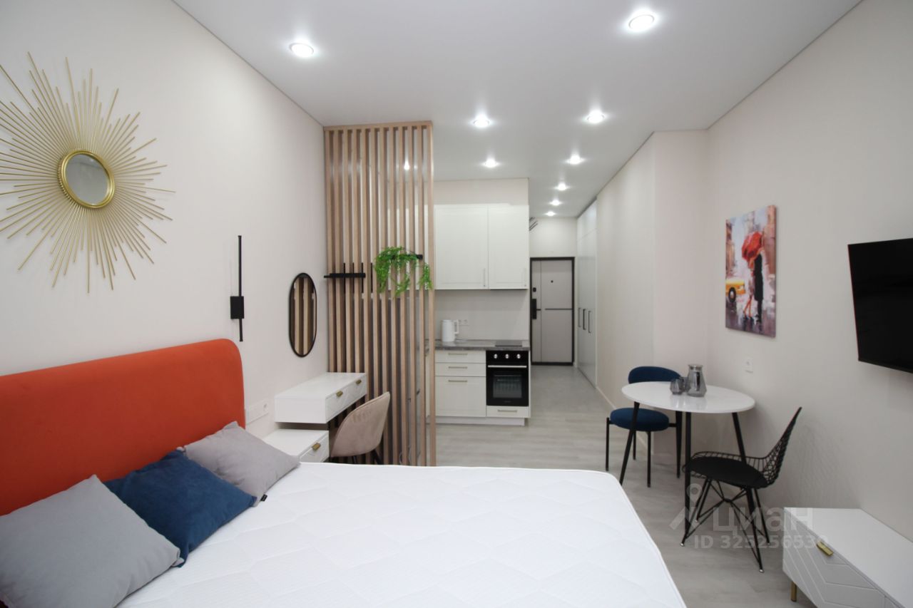 Новый современный ЖК Апарт комплекс М1 Сколково . Сдается впервые, все новое. Уютная и светлая квартира-студия только после дизайнерского ремонта. Встроенный кухонный гарнитур с вытяжкой, варочной панелью, духовым шкафом и микроволновой печью, электрический чайник, двухкамерный холодильник с технологией no frost, обеденный стол с 2 стульями. Большая двухспальная кровать с подъемным механизмом и местом для хранения, тумба-комод и несколько подвесных шкафов-тумб, вместительный четырехдверный шкаф с антресолью. ЖК-телевизор с функцией Smart TV , кондиционер, подключен интернет Wi-Fi. В квартире есть всё необходимое для комфортного проживания, Несколько режимов освещения, шторы блэкаут. Полы ламинат и плитка, окна стеклопакеты, натяжные потолки.