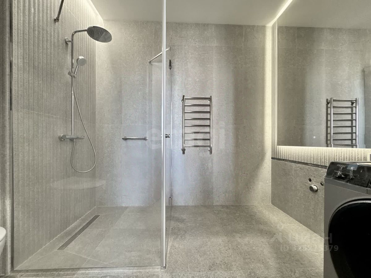 Планировка квартиры продумана до мелочей: просторная кухня площадью 24 м², уютная спальня 11 м², гардеробная 9 м² с окном и современный совмещенный санузел 6,3 м². Внутреннее оформление выполнено с любовью и вниманием к деталям: качественная отделка, вся мебель изготовлена на заказ, что придаёт помещению индивидуальность и стиль. В спальне вас встретит теплый паркет Finex премиум, а в остальных зонах — керамогранит с электрическим подогревом, который создаст атмосферу уюта даже в холодные дни. Кровать из Италии с нубуковым покрытием, плитка в ванной от Парселрноза Prada, входная дверь с системой ''умный дом'' и стеклянные розетки и выключатели европейского качества — все это делает квартиру поистине уникальной.