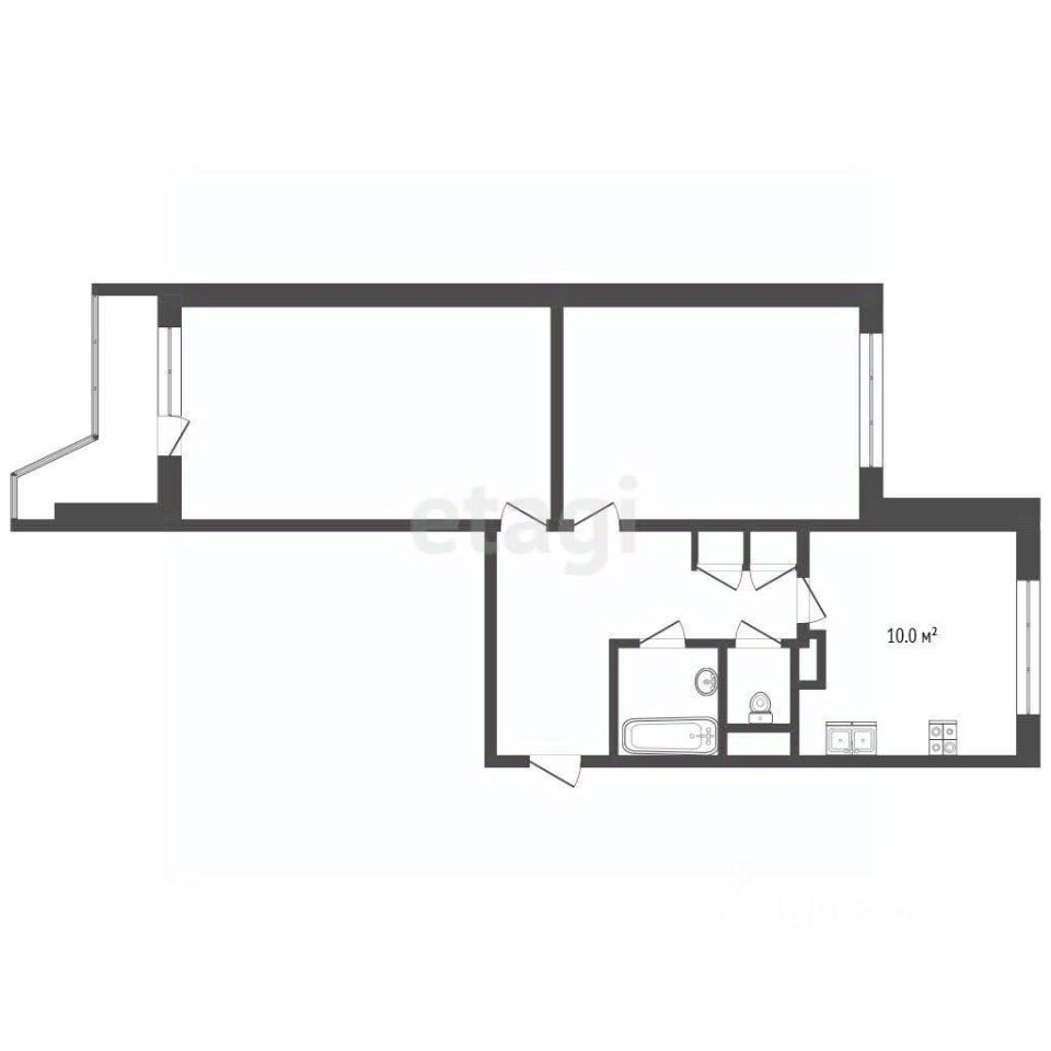 КВАРТИРА: 2 изолированные комнаты Кухня 10 кв. м.
