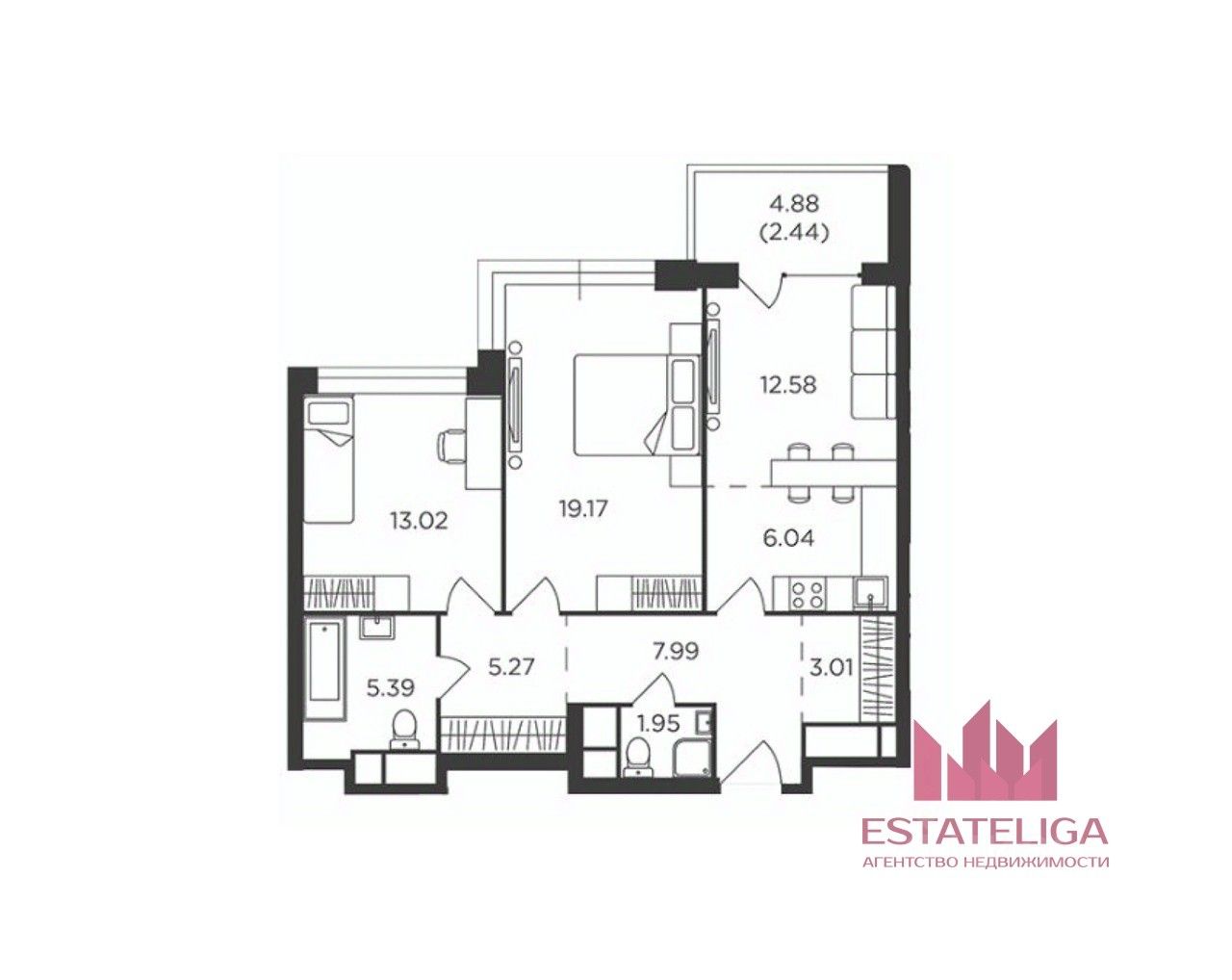 Id 59367. Внимание! Площадь БЕЗ учета лоджии 74,5 кв.м. В объявлении указана площадь с понижающим коэффициентом.