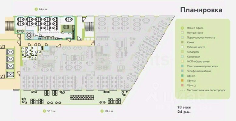 Помещение с дизайнерской отделкой, смешанная планировка, на 24 рабочих места. В аренду включены: коммунальные платежи, мелкий ремонт, мебель, копировальная техника и бумага, клининг, кофе поинт, озеленение, ресепшн, СКУД и видеонаблюдение. Система вентиляции - приточно-вытяжная, система кондиционирования - центральная. В наличии подземная парковка.