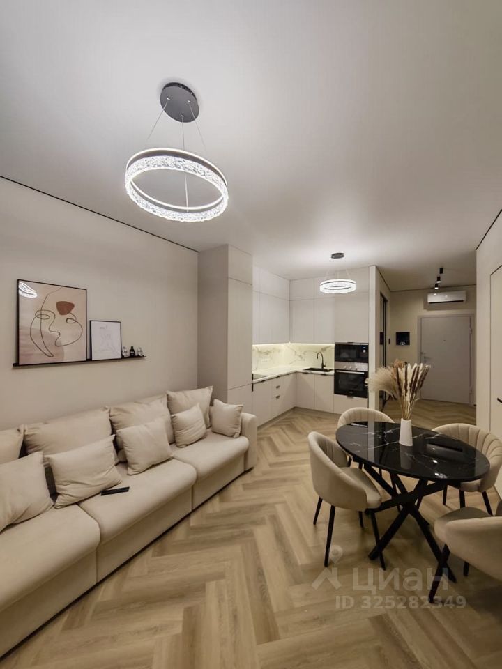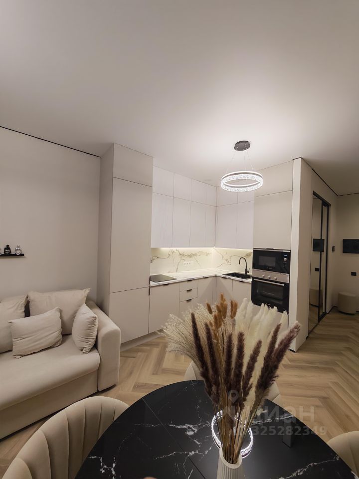 Абсолютно новая квартира со свежим ремонтом, гостиная объединена с кухней, отдельная спальня. Квартира сдается с мебелью и техникой. Кровать шириной 180 см, диван в гостиной раскладной. В прихожей очень вместительный шкаф, в спальне-тоже