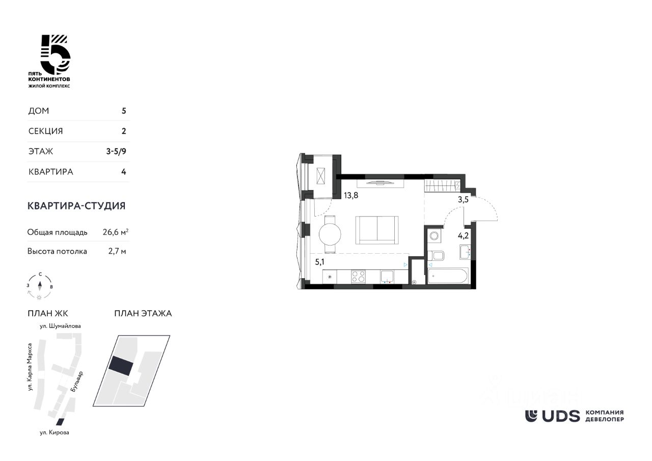 Жильё в центре — надёжный ликвид и уверенность в будущем. Выбирайте ЖК ''Пять континентов'' для жизни и инвестиций.