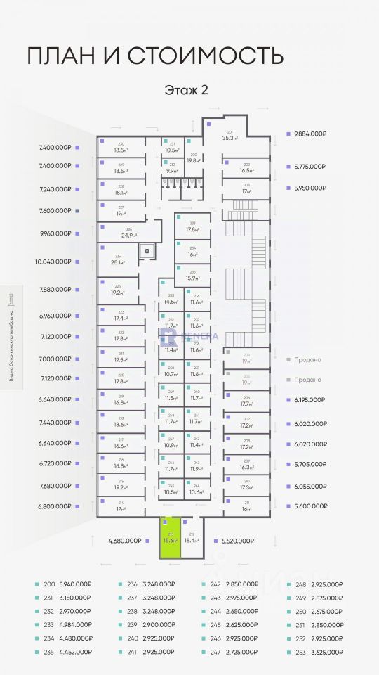 Ключевые цифры: Офис: 213 Этаж: 2 из 3 Без окна, мокрая точка. Площадь: 15,6 м² Цена за м²: 300 000 руб. Полная стоимость: 4 680 000 руб.