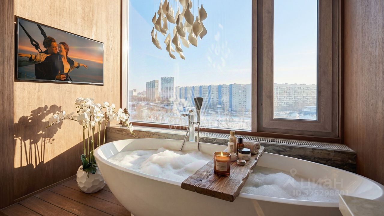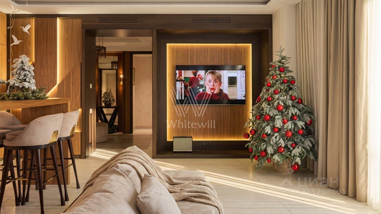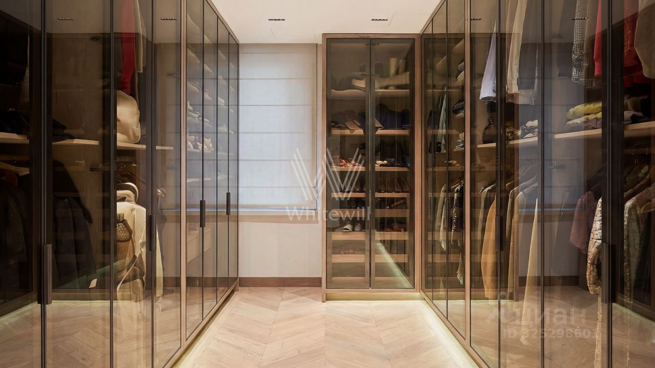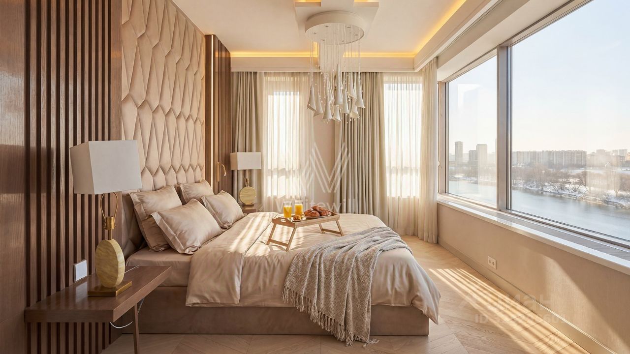 Видовая квартира с тремя спальнями общей площадью 165 м² в квартале бизнес-класса River Park на берегу Москвы-реки. Квартира с террасой и прямыми видами на воду расположена на 8 этаже. Выполнена авторская отделка в неоклассическом стиле, интерьеры украшают многоуровневые потолки, графика на стенах и люстры ручной работы бренда Sagarti. Установлена системы приточной-вытяжной вентиляции, умный дом и очистки воды.