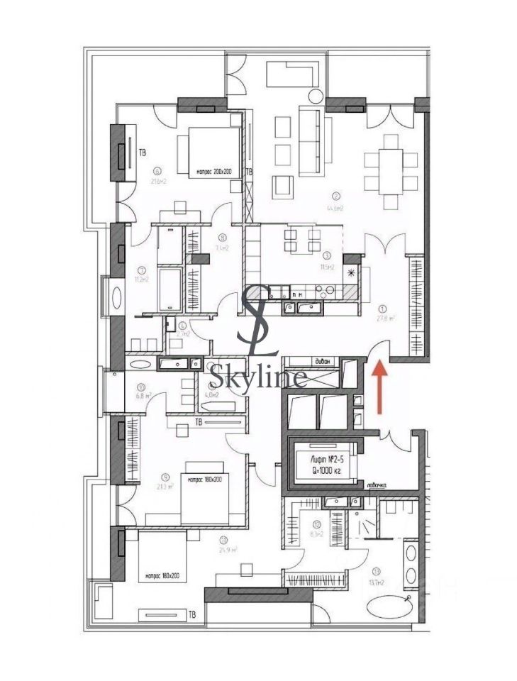 Один из возможных вариантов ПЛАНИРОВКИ: - просторная, видовая кухня-гостиная со столовой зоной, - три мастер-спальни, - гостевой санузел, - постирочная, - гардеробная при входе, - холл. В квартире высокие потолки 3,5 метра. Полная стоимость в Договоре. Возможна ипотека.