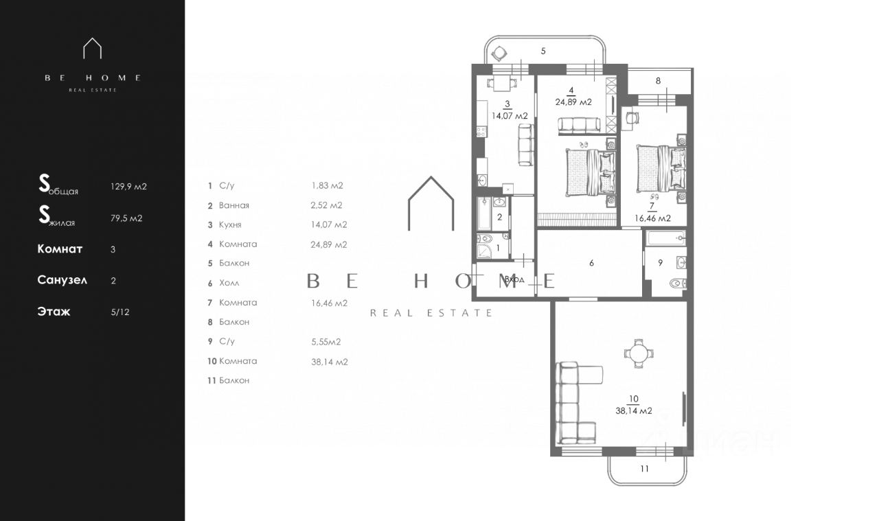 Монолитно-кирпичный дом, 5 этаж из 12, охраняемая территория, круглосуточные консьержи.