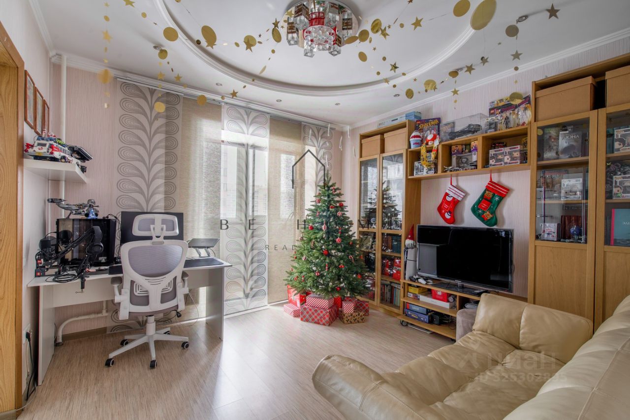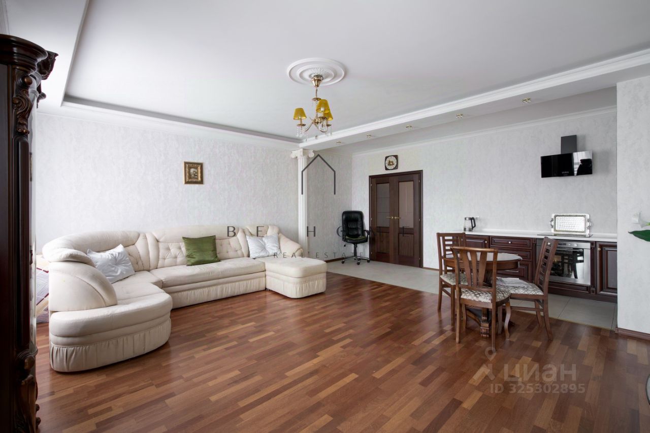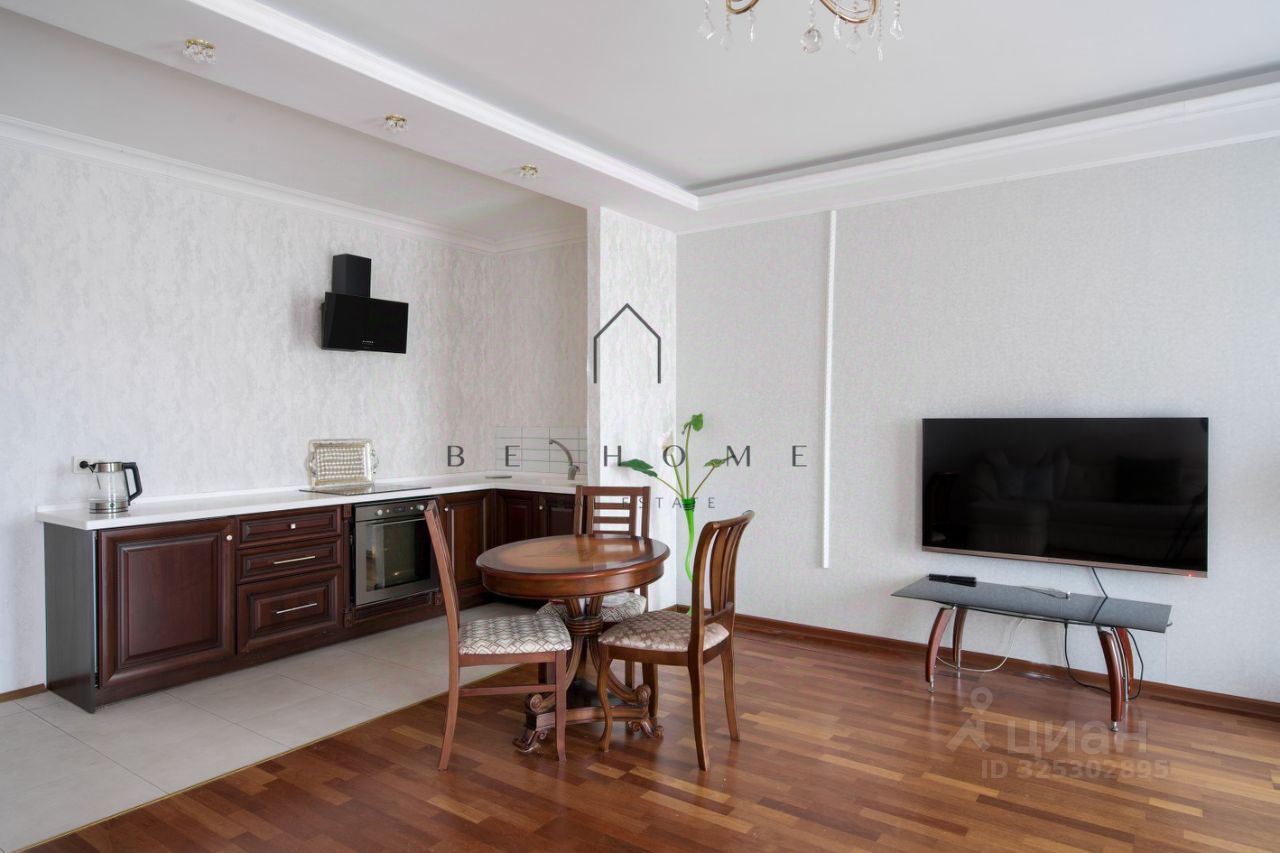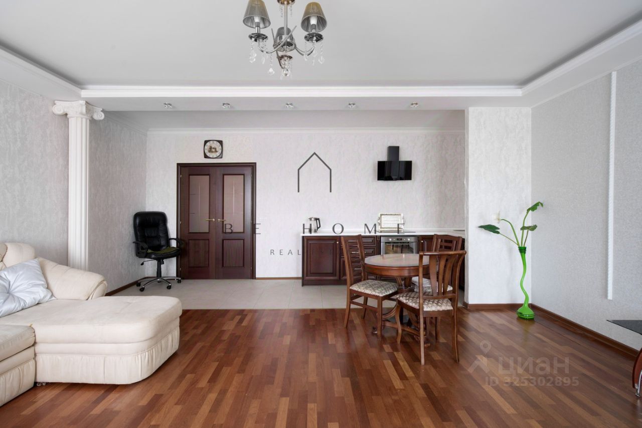 На данный момент квартира разделена на две отдельные полноценные квартиры: гипсокартонной перегородкой: двухкомнатная квартира площадью 82,63 м² с двумя изолированными комнатами, совмещенным санузлом и холлом, а также однокомнатная квартира площадью 43,31 м² с кухней, спальней и санузлом. При желании перегородку легко убрать и получить полноценную 4-комнатную квартиру, так как несущие стены не затронуты.