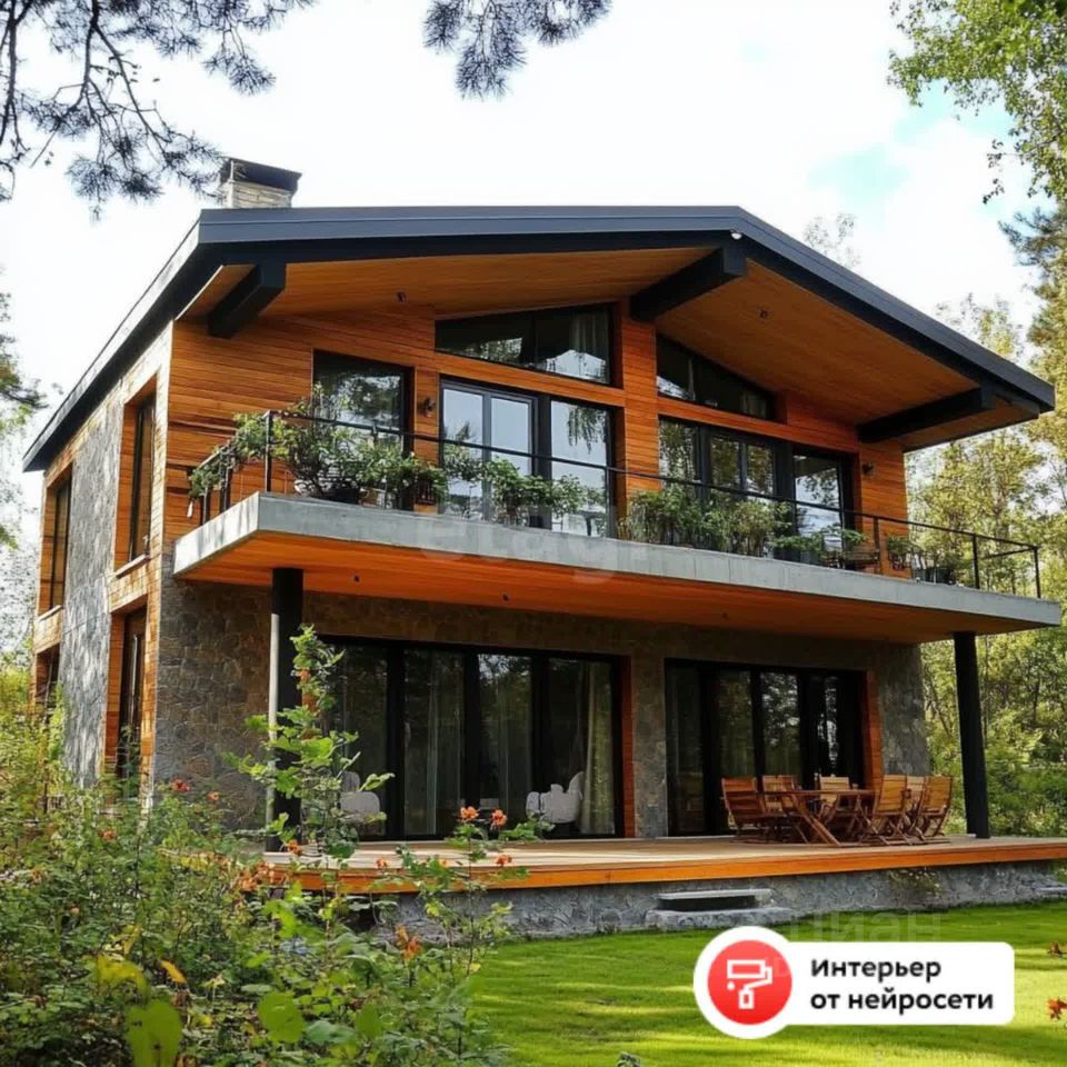 Шале 15м*11м. Первый этаж из кирпича, второй этаж из бруса. В дом заведены коммуникации: электричество и водоснабжение.