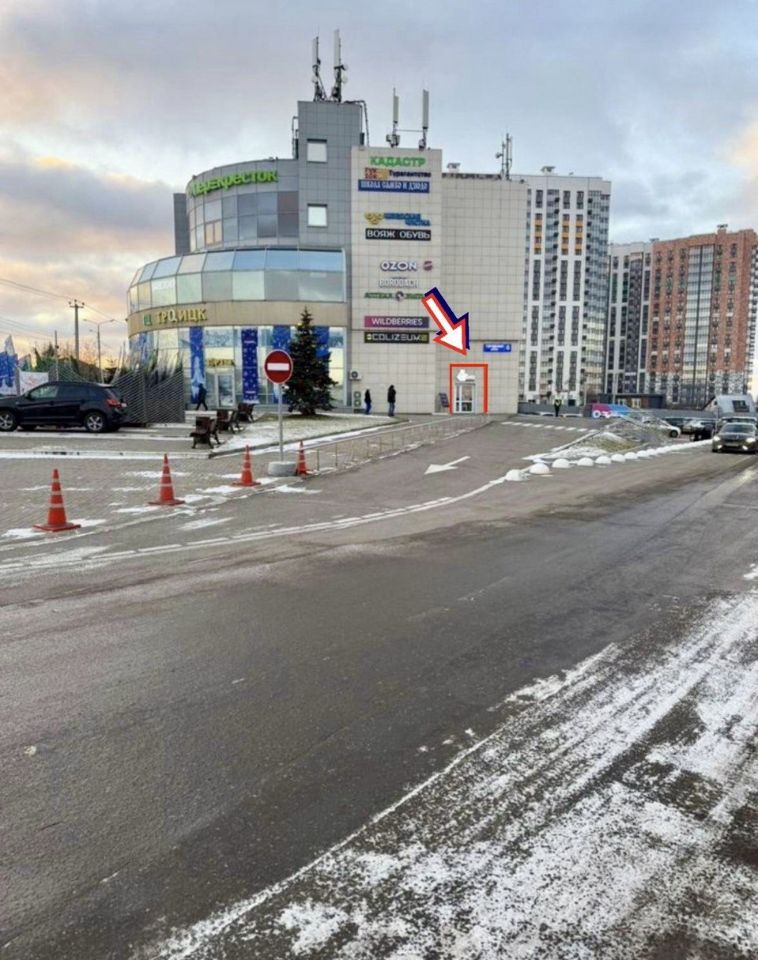 Возле ТЦ бесплатная парковка для легковых и грузовых автомобилей.