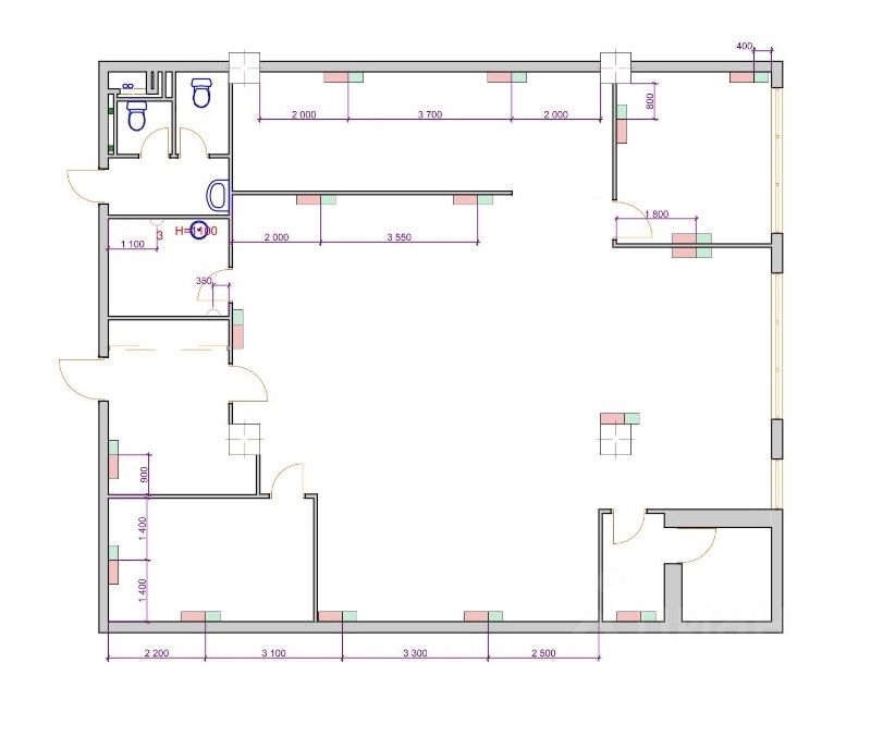 Смешанной планировки: open space + 2 кабинета + зона ресепшен + кухня + с/у.