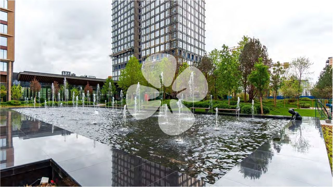 На закрытой территории комплекса расположена прогулочная зона с озеленением и фонтанами, полное отсутствие автомобильного движения.