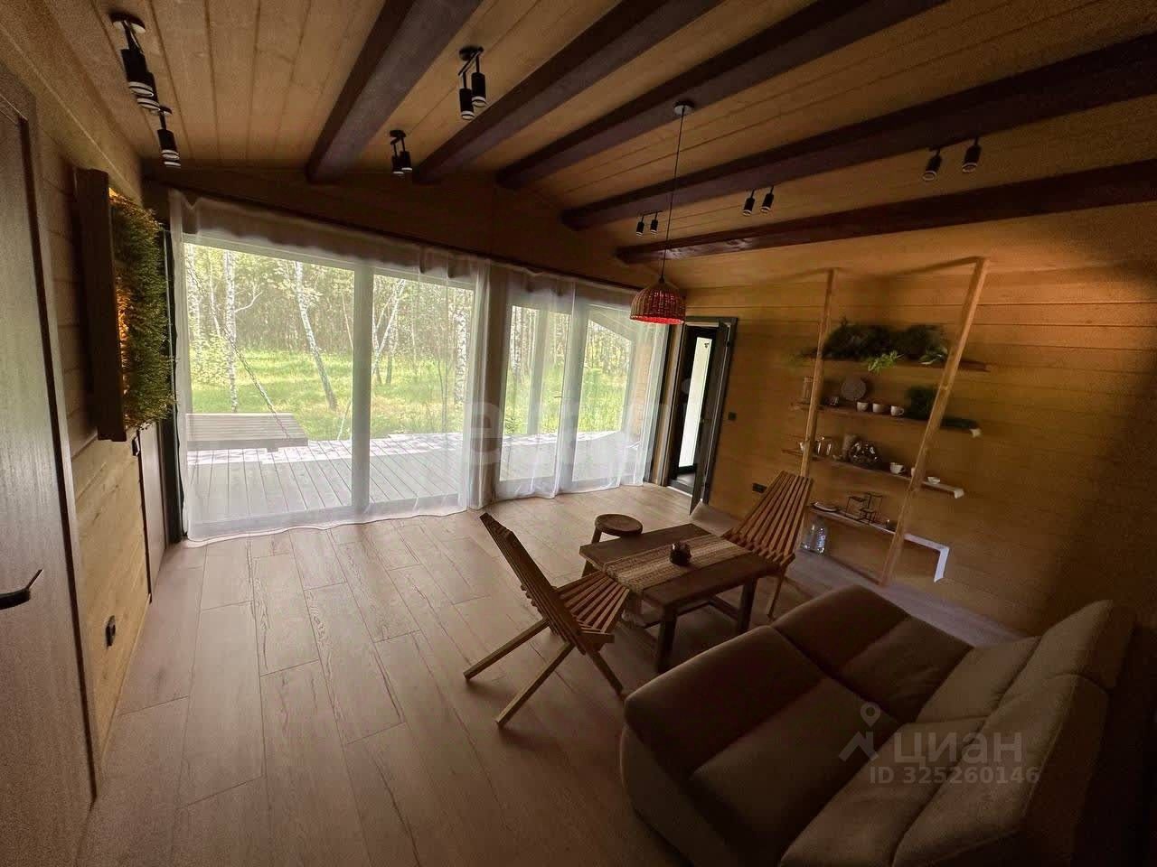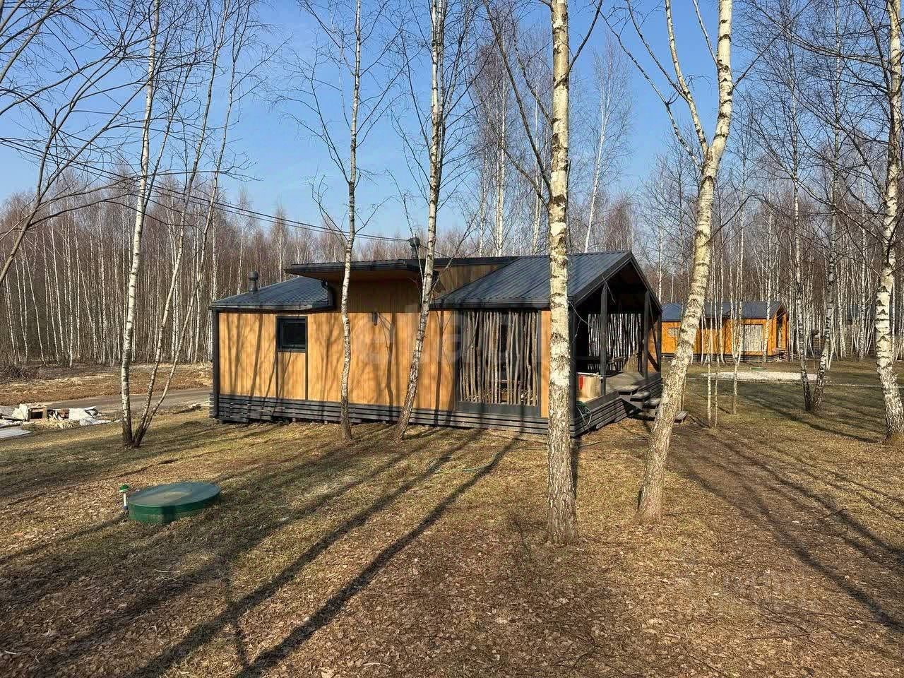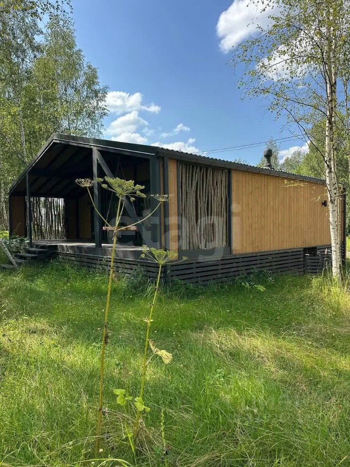Планировка функциональна и включает просторную общую зону с раскладным диваном и панорамным остеклением, отдельную большую парную и две компактные комнаты, конфигурацию которых можно адаптировать под конкретные задачи. Кухонная зона в настоящее время не оборудована, что позволяет новому владельцу установить модуль по своему вкусу и бюджету. Дополняет дом большая веранда для отдыха на свежем воздухе.