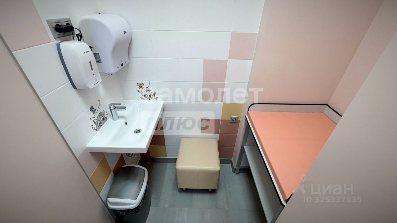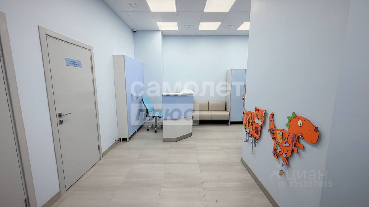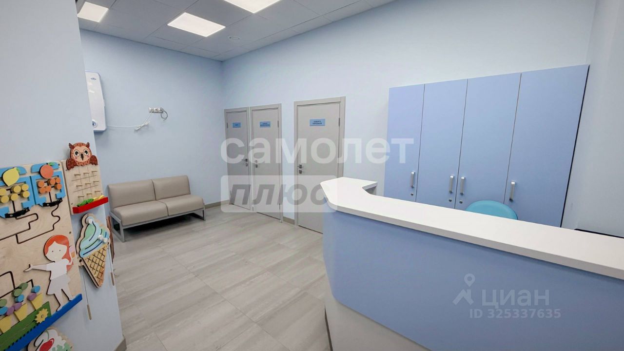 Вход в помещение на 1 этаже организован со стороны улицы. Помещение с новым ремонтом, сделано по всем нормам Санпина. В данном помещении на 1 этаже имеется ресепшен, 3 кабинета, один из которых предусматривает лабораторные исследования, два остальных оборудованы под приемы маленьких пациентов. Помещение также оборудовано комнатой приема пищи, хозяйственным блоком и санузлами, имеется комната для матери и ребенка.