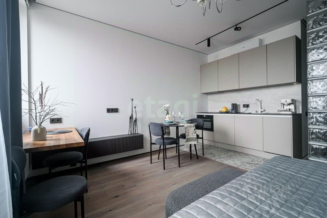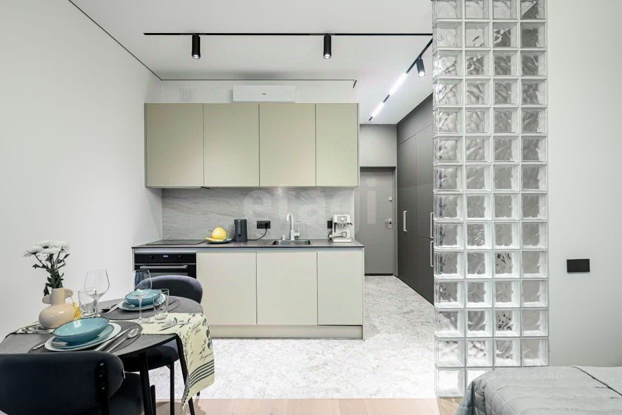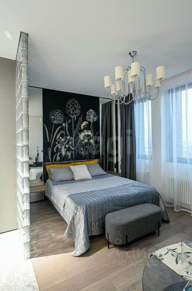Планировка функциональна и включает спальную зону, гардеробную, просторную кухню и ванную комнату. Ремонт выполнен с применением качественных материалов: полы из инженерной доски и керамогранита, стены окрашены и дополнены художественной росписью. Помещение полностью укомплектовано мебелью, включая ортопедическую кровать 160x200, встроенные шкафы, рабочий и обеденный столы, а также всей необходимой бытовой техникой премиум-сегмента. В список входит встроенный холодильник, стирально-сушильная машина, посудомоечная машина, духовой шкаф с функцией микроволновой печи, варочная панель, кофемашина и система кондиционирования. Апартаменты также обеспечены полным набором посуды и предметов для комфортной жизни. Особое внимание уделено световому дизайну — реализовано несколько сценариев освещения, что создает атмосферу и подчеркивает детали интерьера. Это решение идеально подходит для тех, кто ценит современный уровень отделки, полную готовность объекта к заселению и преимущества локации в комплексе бизнес-класса.