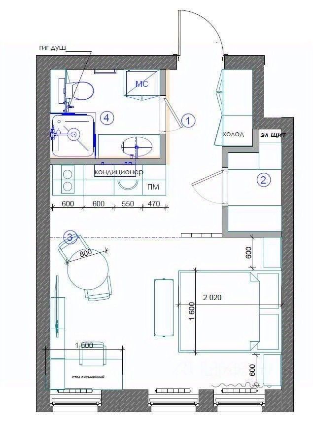 Планировка функциональна и включает спальную зону, гардеробную, просторную кухню и ванную комнату.