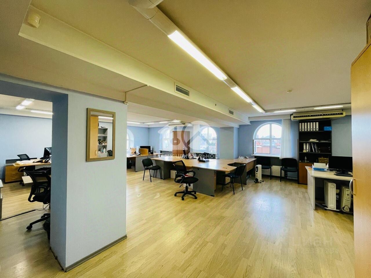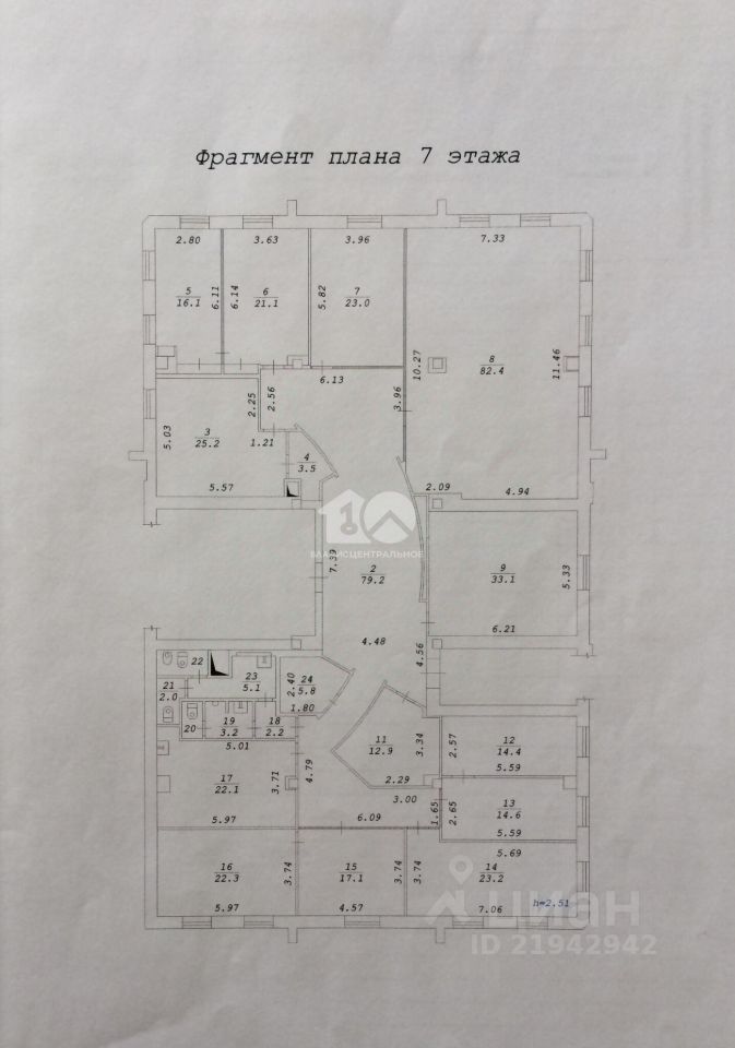 Предлагается в продажу офисное помещение площадью 432,3 кв. м, полностью занимающее 7 этаж административной части жилого дома.