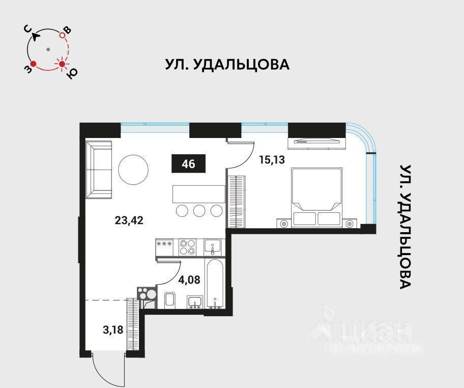 Лучшие видовые характеристики с видом на ул. Удальцова. Выгодная стоимость, ниже, чем у Застройщика. Эксклюзивный вариант.