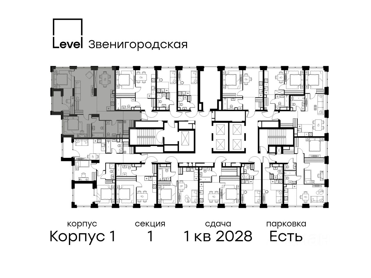 В жилом квартале продаётся 4-комнатная квартира площадью 96.60 кв.м white box. Квартира расположена на 10 этаже 48 этажного корпуса 1 в жилом комплексе комфорт класса Level Звенигородская (компания Level Group/Левел групп).