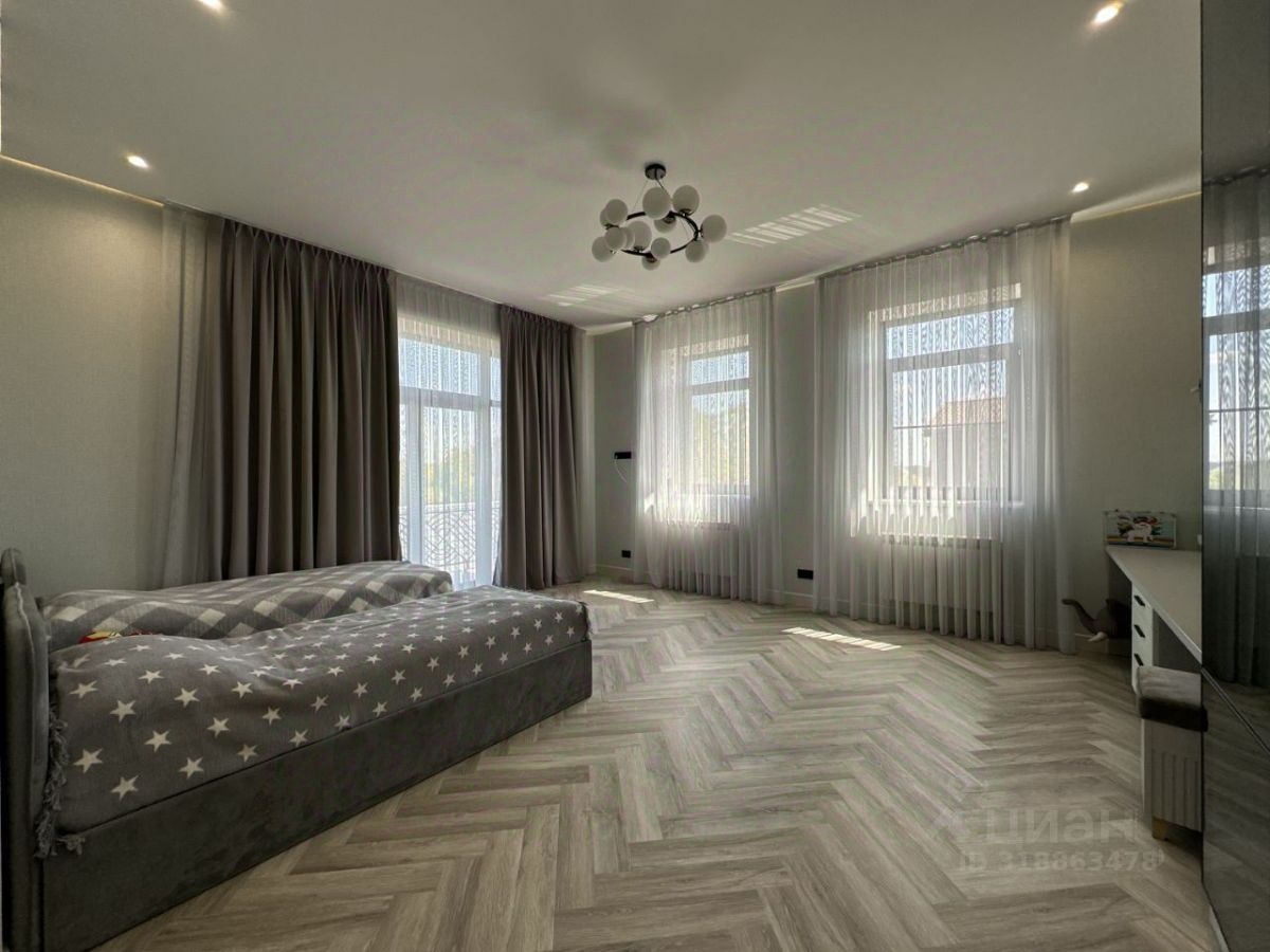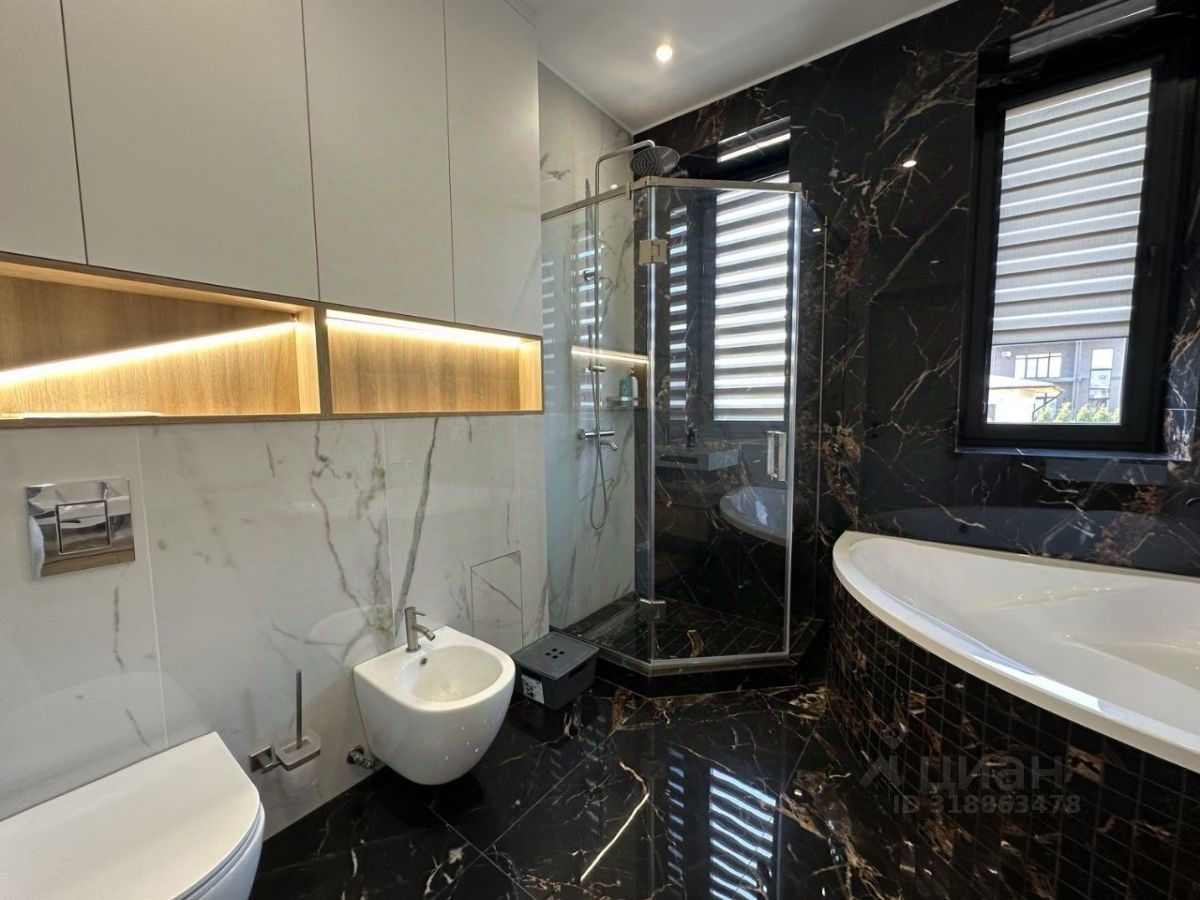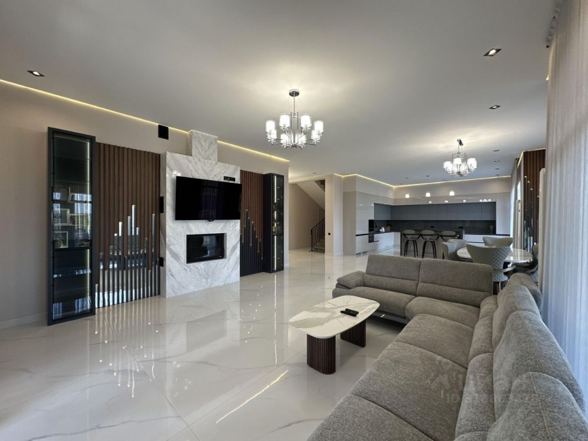 Удобная планировка рассчитана на большую семью, в доме 8 комнат из них 3 полноценные мастер-спальни собственной ванной комнатой и гардеробной. Первый этаж: просторная кухня-гостиная с дровяным камином и выходом на открытую террасу, хозяйская мастер-спальня, гостевой санузел, прачечная, котельная Второй этаж: две полноценные мастер-спальни, три комнаты, ванная комната Мансарда: большой холл, две комнаты, санузел, большая кладовая. Подключены все центральные коммуникации -газ, канализация, вода, свет. Закрытый охраняемый поселок, рядом есть магазины, школы, детские сады, парк.