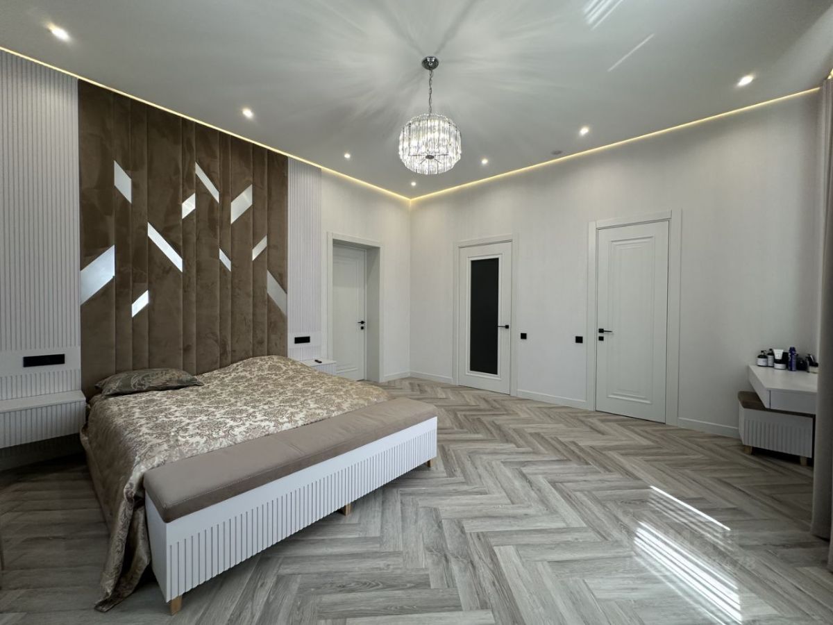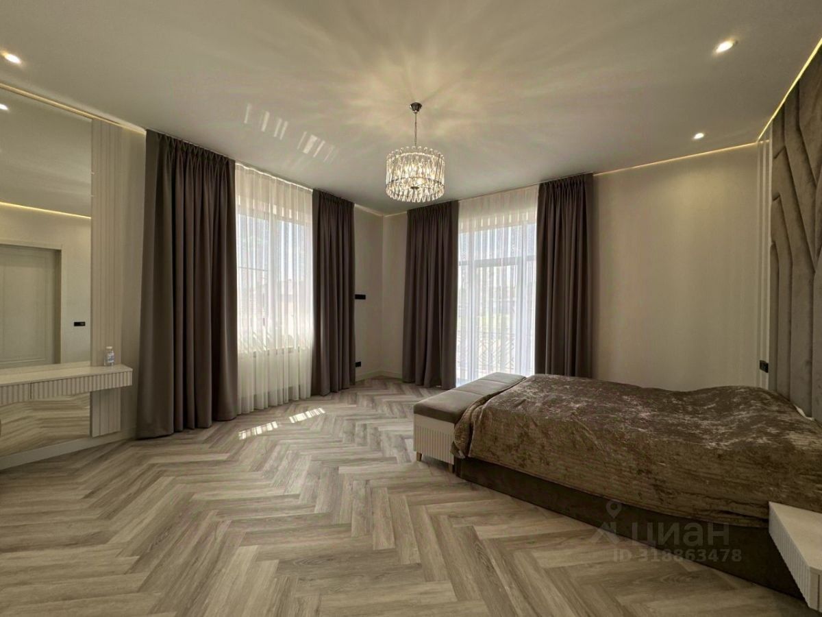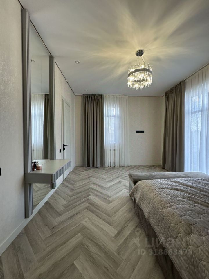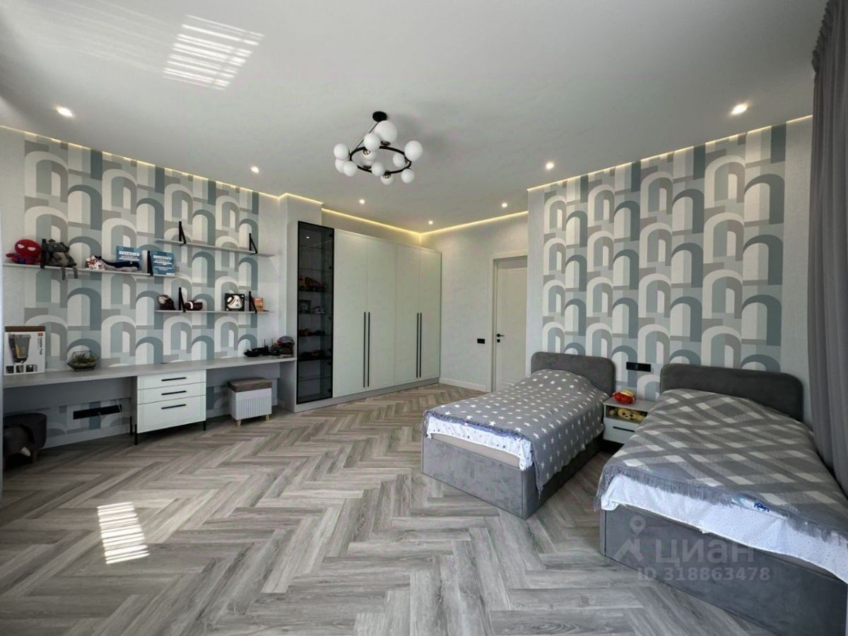 Удобная планировка рассчитана на большую семью, в доме 8 комнат из них 3 полноценные мастер-спальни собственной ванной комнатой и гардеробной. Первый этаж: просторная кухня-гостиная с дровяным камином и выходом на открытую террасу, хозяйская мастер-спальня, гостевой санузел, прачечная, котельная Второй этаж: две полноценные мастер-спальни, три комнаты, ванная комната Мансарда: большой холл, две комнаты, санузел, большая кладовая. Подключены все центральные коммуникации -газ, канализация, вода, свет. Закрытый охраняемый поселок, рядом есть магазины, школы, детские сады, парк.