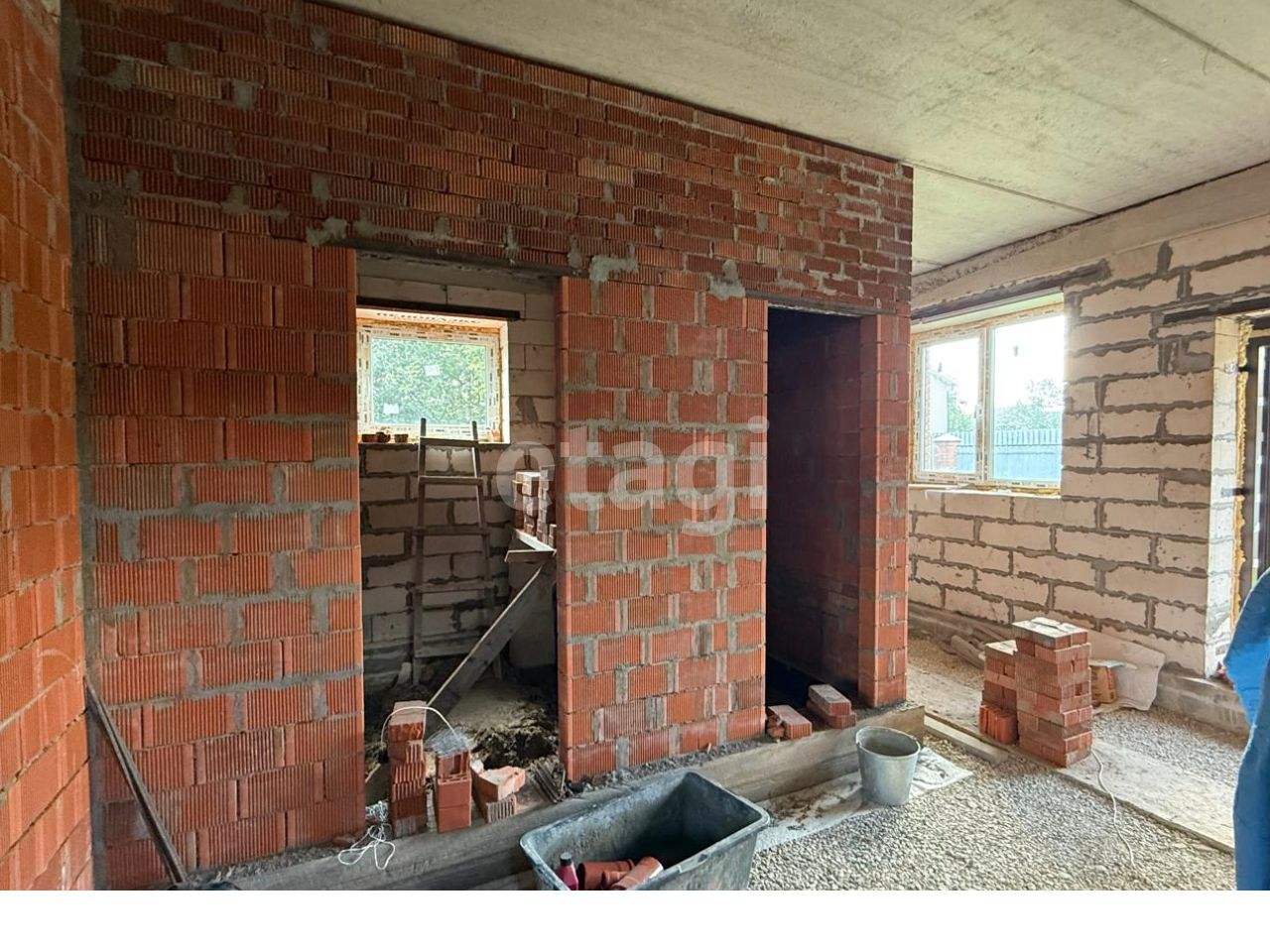 Дом построен в 2019-2020 годах, облицован кирпичом, с установкой качественных окон и дверей в 2021 году. Общая площадь дома составляет 196,8 кв.м, включая гараж и бойлерную на 32 кв.м. Участок — 8 соток. Все коммуникации центральные: электричество, вода и канализация уже подключены. Магистральный газопровод находится в непосредственной близости от участка.
