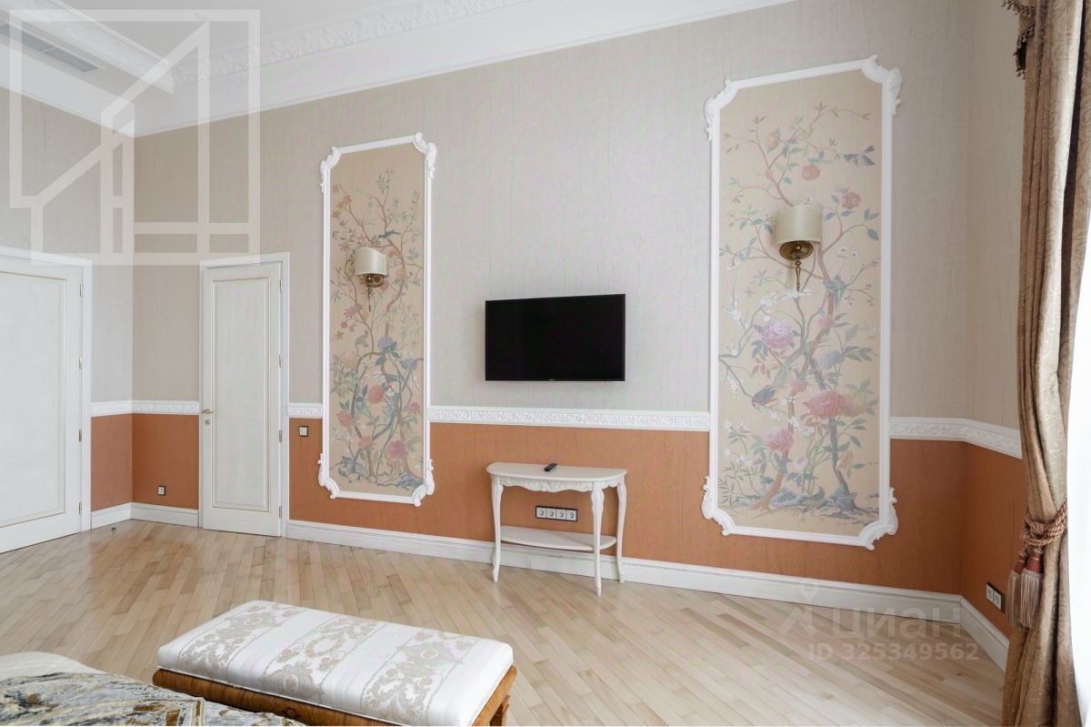 Лот 541308. Бонус агенту 50%! В аренду предлагается роскошный трехкомнатный пентхаус 219 кв.м в ЖК ''Триумф Палас'' с авторским дизайн- проектом и эксклюзивной отделкой. Интерьер выполнен в концепции Времена года: каждая зона выполнена в цветовой гамме определенного времени года. Планировка включает в себя: просторную светлую гостиную с библиотекой , декоративным камином и выходом на террасу, полностью оборудованную необходимой техникой кухню, роскошную просторную мастер-спальню с большой гардеробной, кабинет, 2 просторные гардеробные, кладовую, 3 с/у ( 2 совмещенных санузла , один из которых с окном и джакузи , а также 1 гостевой санузел). Потолки- 4 метра, что обеспечивает дополнительный простор и свет. Потолки и стены квартиры украшает ручная гипсовая лепнина.