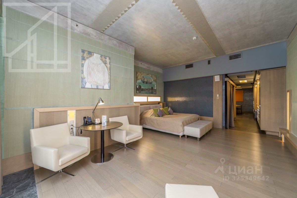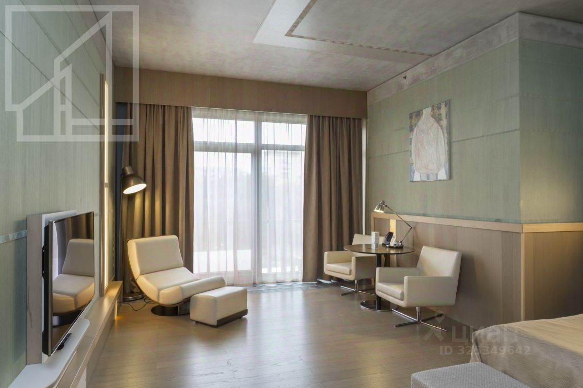 Планировка: спальня с зоной отдыха, кухня с обеденной зоной, раздельный с/у с ванной. Апартаменты меблированы, укомплектованы всей необходимой для жизни бытовой техникой. Панорамные окна, своя прачечная, заказ из ресторана прямо в номер.