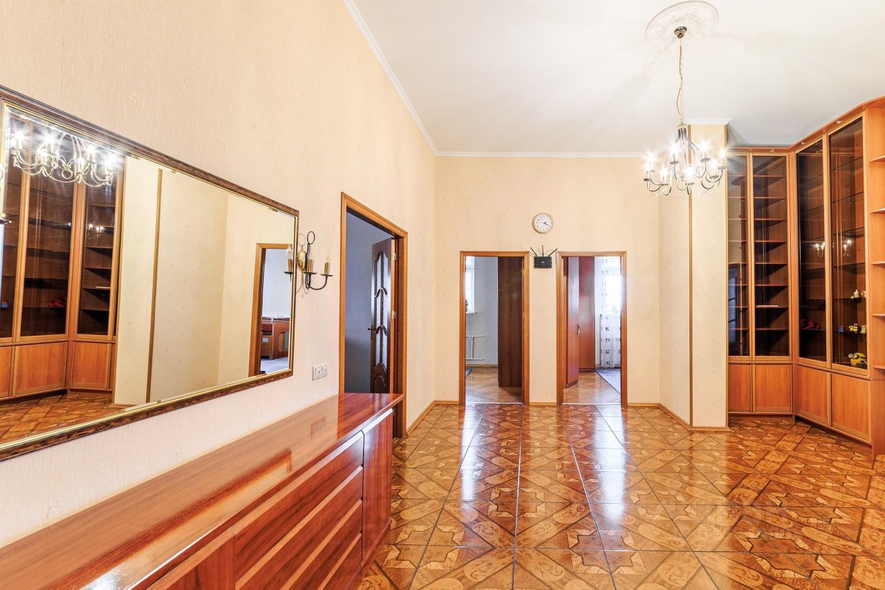 Представляем вашему вниманию уникальную 4-х комнатную квартиру, где гармонично соединены историческая архитектура сталинского дома и современный комфорт. Уникальное предложение: квартира занимает всю ширину здания, благодаря чему в помещениях много света.