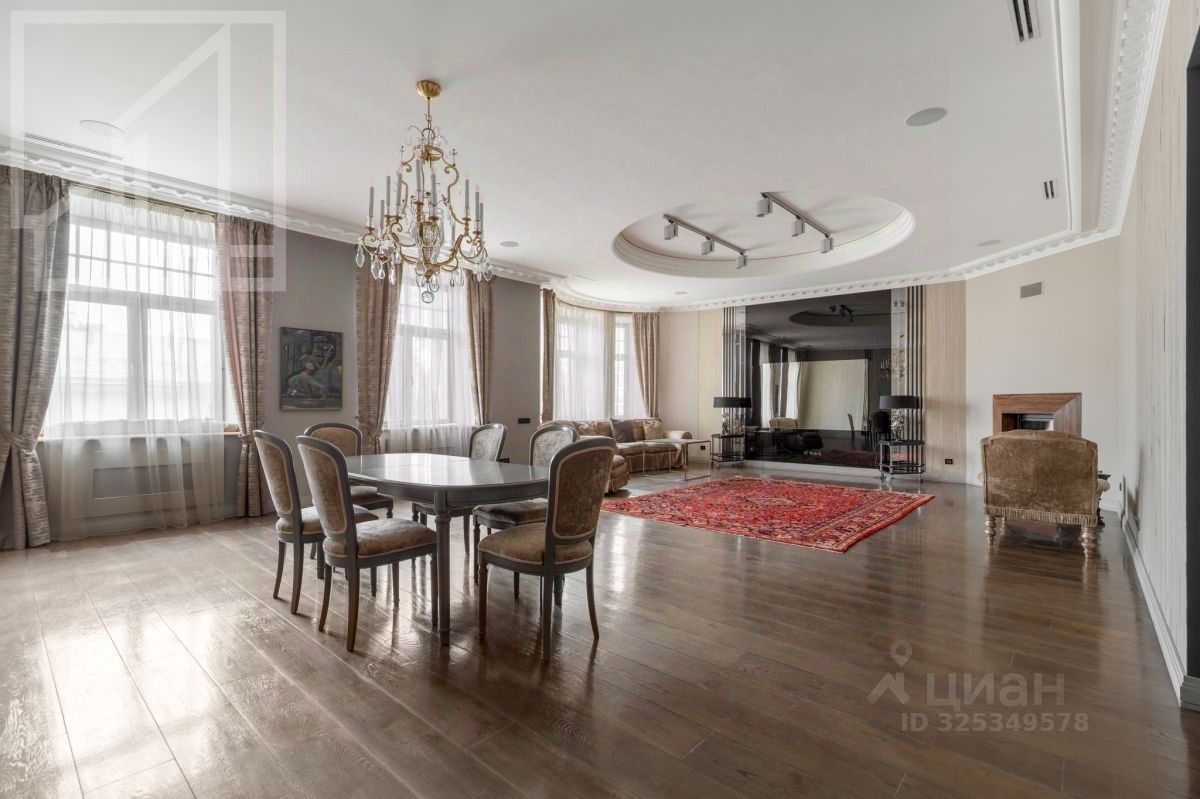 Планировка: гостиная-кухня, четыре спальни, три санузла, гардеробная, постирочная. Высокие потолки 3.80 м. Окна выходят на обе стороны: в тихий двор и на улицу, при этом в квартире очень тихо. Ремонт в уникальном авторском стиле. Квартира предлагается с мебелью, вывоз обсуждается.