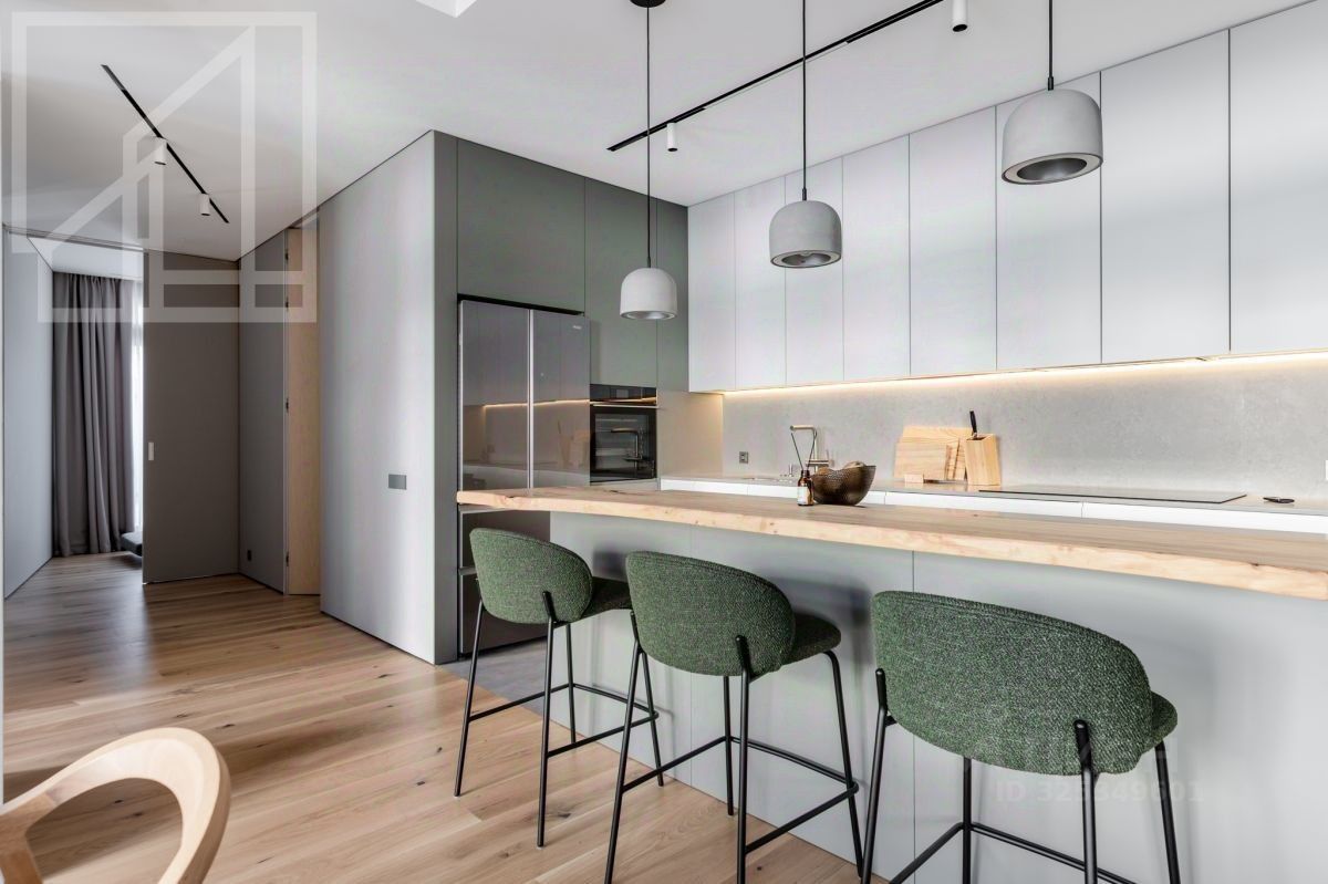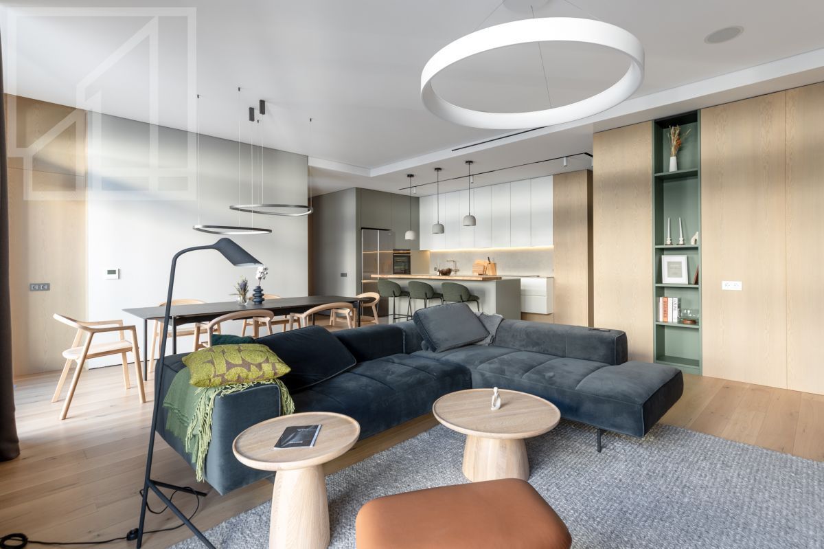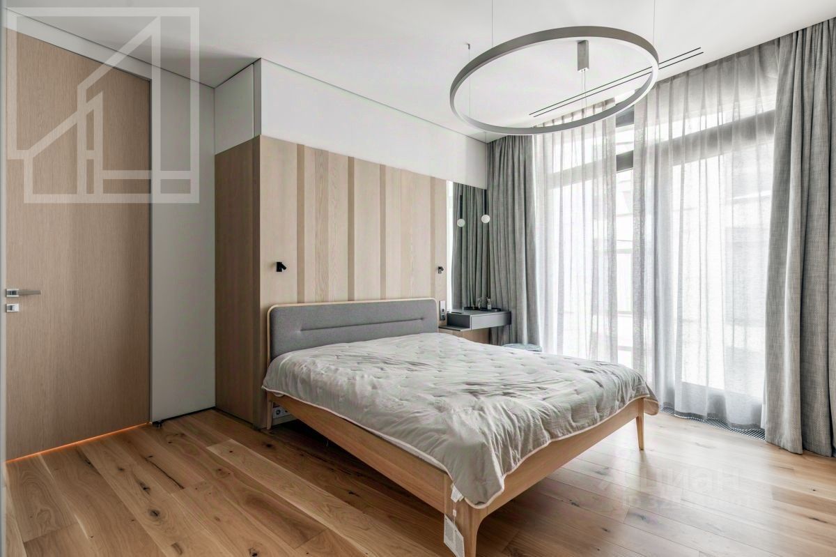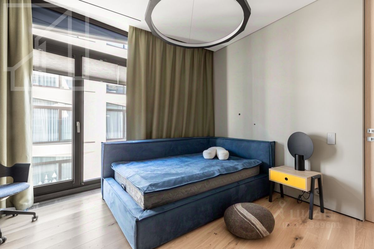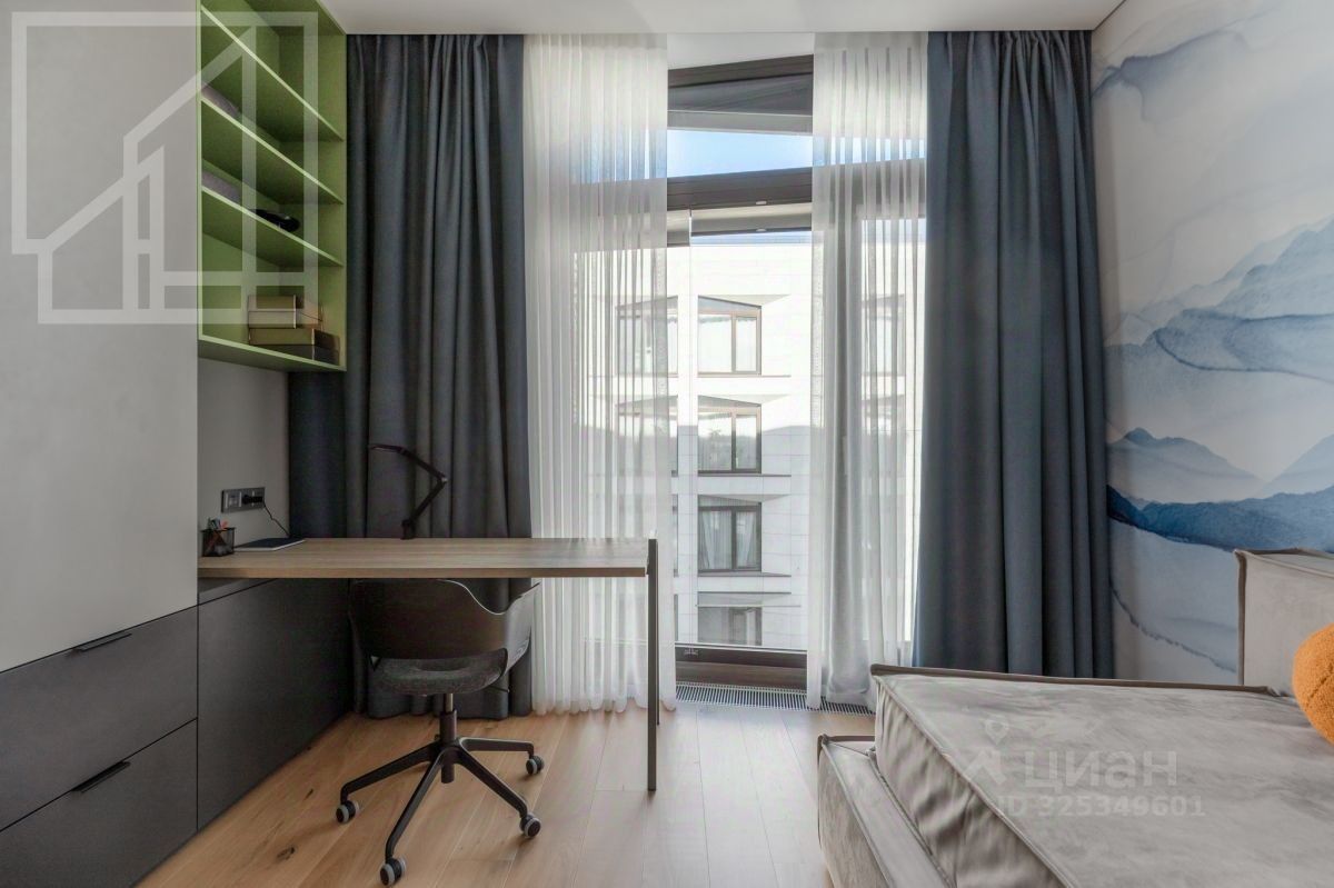 Планировка: просторная кухня-гостиная с панорамными окнами и французскими балконами, мастер-спальня с отдельной ванной комнатой и душевой, две детские комнаты (можно использовать как кабинеты), гостевая комната, гардеробная и постирочная. Выполнен дизайнерский ремонт по авторскому проекту. Апартаменты полностью меблированы и оснащены всей необходимой техникой.