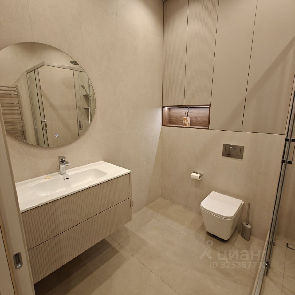 Кухня гостиная с панорамными окнами на воду, 3 изолированные спальни, 2 с/у, оборудованная постирочная, гардеробная комната.