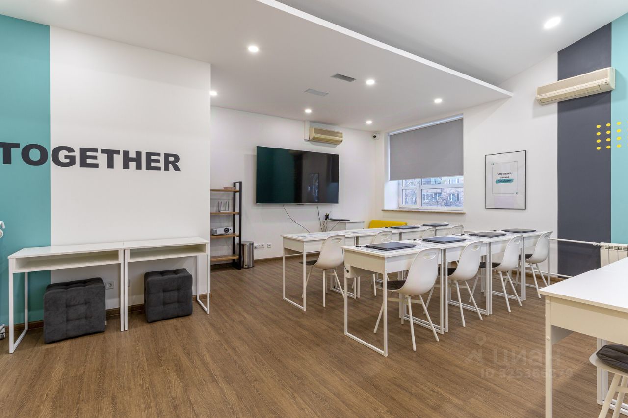 Помещение полностью меблировано и оснащено техникой: рабочие столы, шкафы, стулья, ноутбуки, телевизоры, кондиционеры. Возможна продажа как с полным текущим оснащением, так и в пустом виде — под ваш бизнес-сценарий.