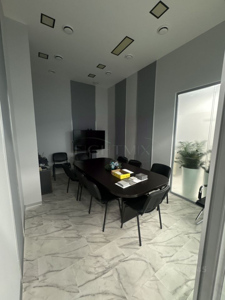 В помещении выполнен евро-ремонт. Санузел на 2 кабины, переговорная, 2 отдельных кабинета, опен-офис, кухня, кладовая, вспомогательная закрытая лестница. Высота потолка 4 метра, увеличенные оконные проемы.