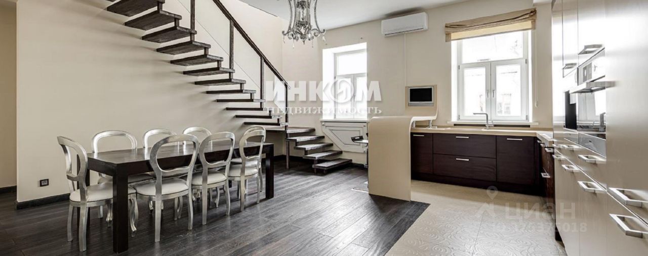 Номер лота: вт-0430806. ЖЕЛЕЗОБЕТОННЫЕ ПЕРЕКРЫТИЯ. Продается 2х-уровневая квартира общей площадью 336,4 кв.м, расположенная в старинном особняке, построенном в 1900 году по индивидуальному проекту архитектора И. П. Машкова. В строении была проведена реконструкция с заменой всех перекрытий на железобетонные, с сохранением исторического облика старинного особняка. В подъезде 8 квартир, что создает особую камерную атмосферу. Дом оснащен лифтом. В квартире выполнен современный ремонт с использованием дорогих пород камня и дерева. Большое количество окон и шестиметровая высота потолков наполняют пространство светом и воздухом. Окна выходят на две стороны. Два уровня соединяет лестница из дуба. Квартира оборудована премиальной бытовой техникой. 1 уровень: холл-22,7 кв.