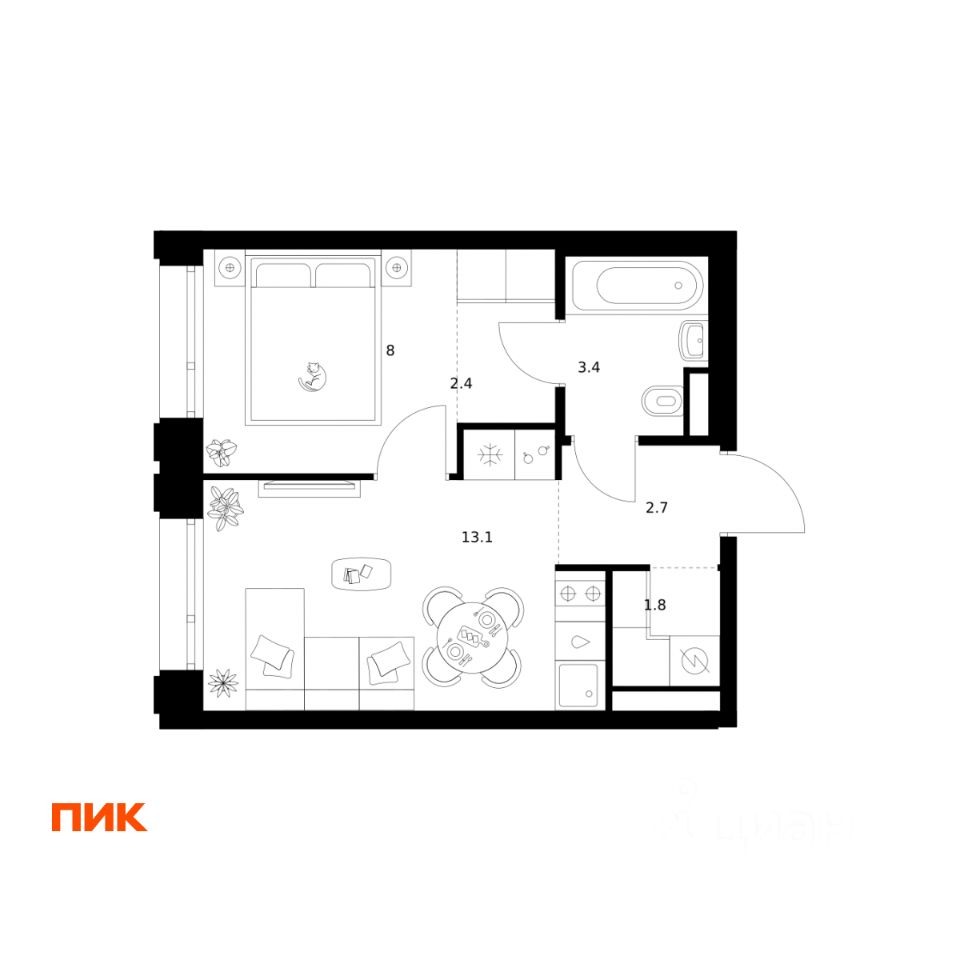 Общая площадь31,4 м2