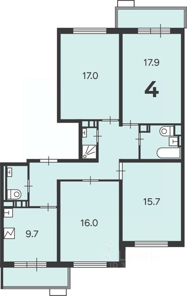 4-комн. кв., 96,3 кв.м -------------------- Продажа квартира, городской округ Троицк, Кварцевая улица, дом 4, корпус 2, этаж 13, кв. 34 --------------------