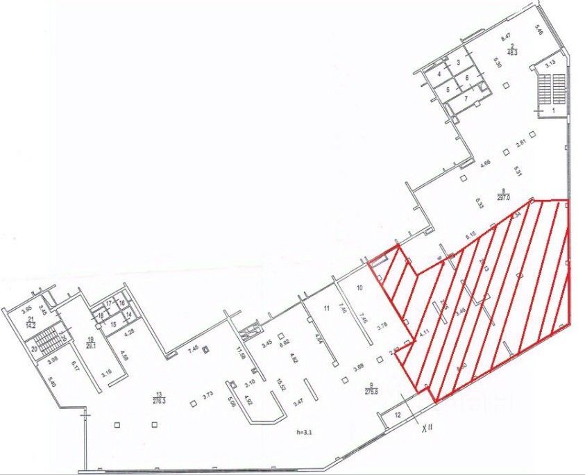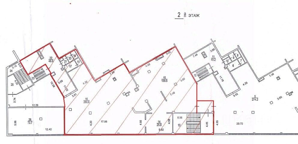 Этот лот состоит из нескольких помещений: 505 кв. м., 547 кв. м., 256 кв. м. и 543 кв. м.