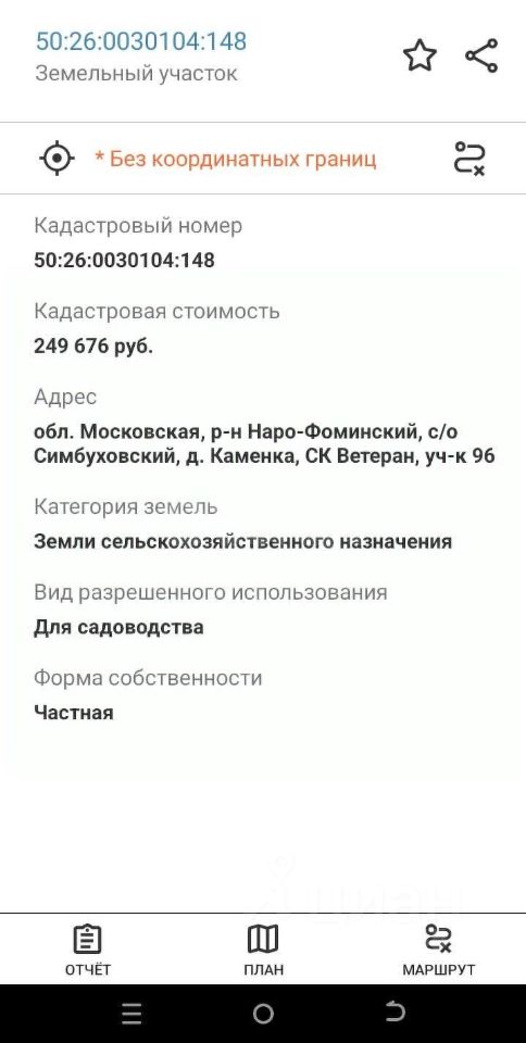Наро-Фоминский район, Симбуховский с\о, д. Каменка, СК Ветеран, уч-к 96. Участок с деревьями, ровный. Электричество по границе, на участке строений нет. Рядом магазин, леса, речка. До МКАД 105 км