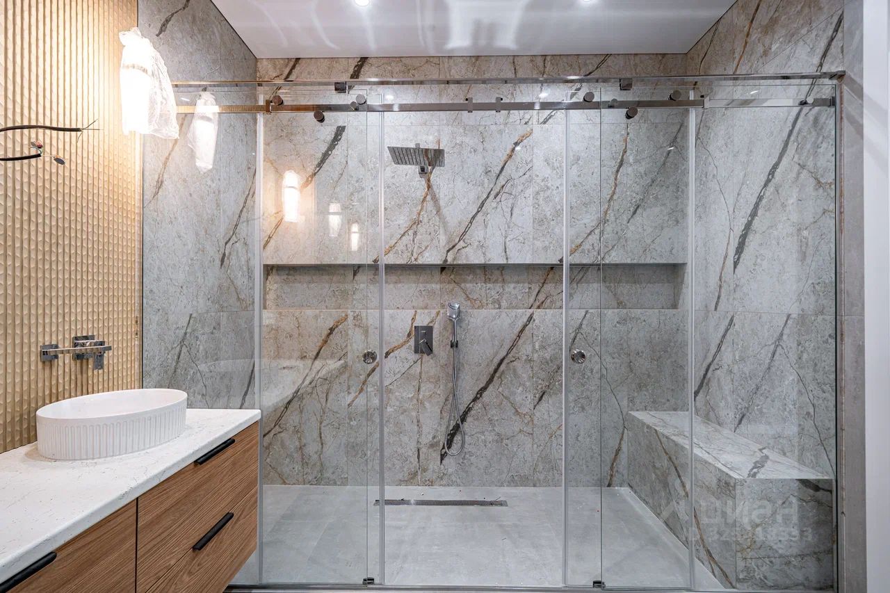 Качество строительства высокое, коммуникации: газ — магистральный, вода — центральное водоснабжение, канализация — центральная, электричество подключено. Участок ИЖС 10,74 сотки с ровным рельефом и профессиональным ландшафтным дизайном.