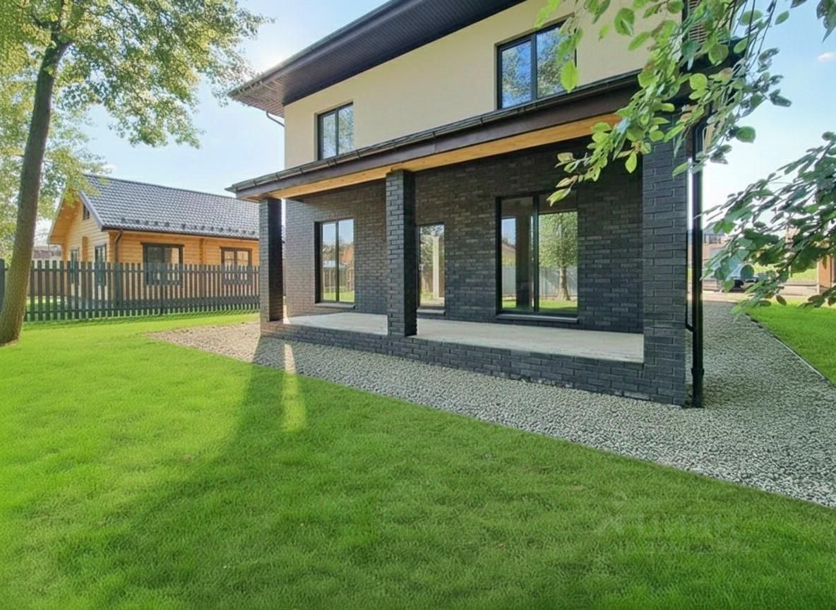 Новый дом 280м в современном стиле с отделкой ''под ключ'' на участке 13 соток в охраняемом коттеджном поселке на территории Новой Москвы. Поселок находится на горке, внизу протекает живописная Река Пахра.