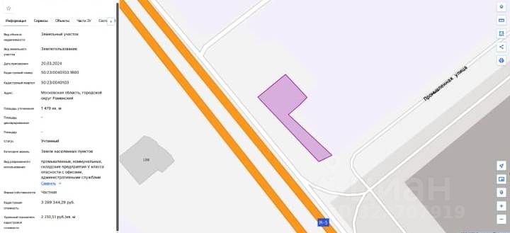 Продается в Раменском г.о. , с. Михайловская Слобода участок, категория которой отнесена к землям населенных пунктов с видом разрешенного использования: для размещения промышленных объектов, промышленных, коммунальных и складских предприятий V класса опасности с офисами, административными службами. Кадастровый номер участка 50:23:0040103:1880